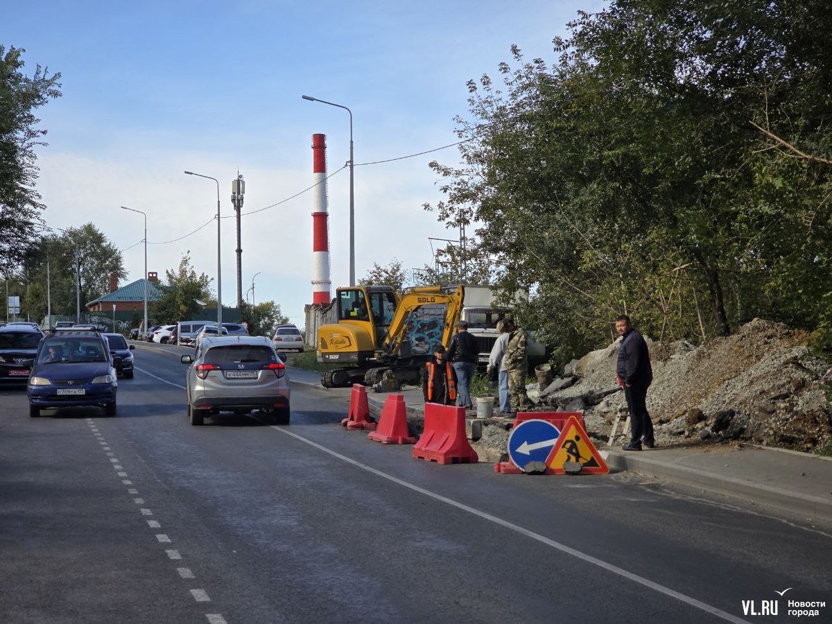 Приморской водоканал ремонтирует канализацию на Авроровской. Здесь на дорогу периодически выходили сточные воды. Это происходило из-за того, что ещё в прошлом году при прокладке ливнёвки сверху залили бетон, который постепенно её деформировал.