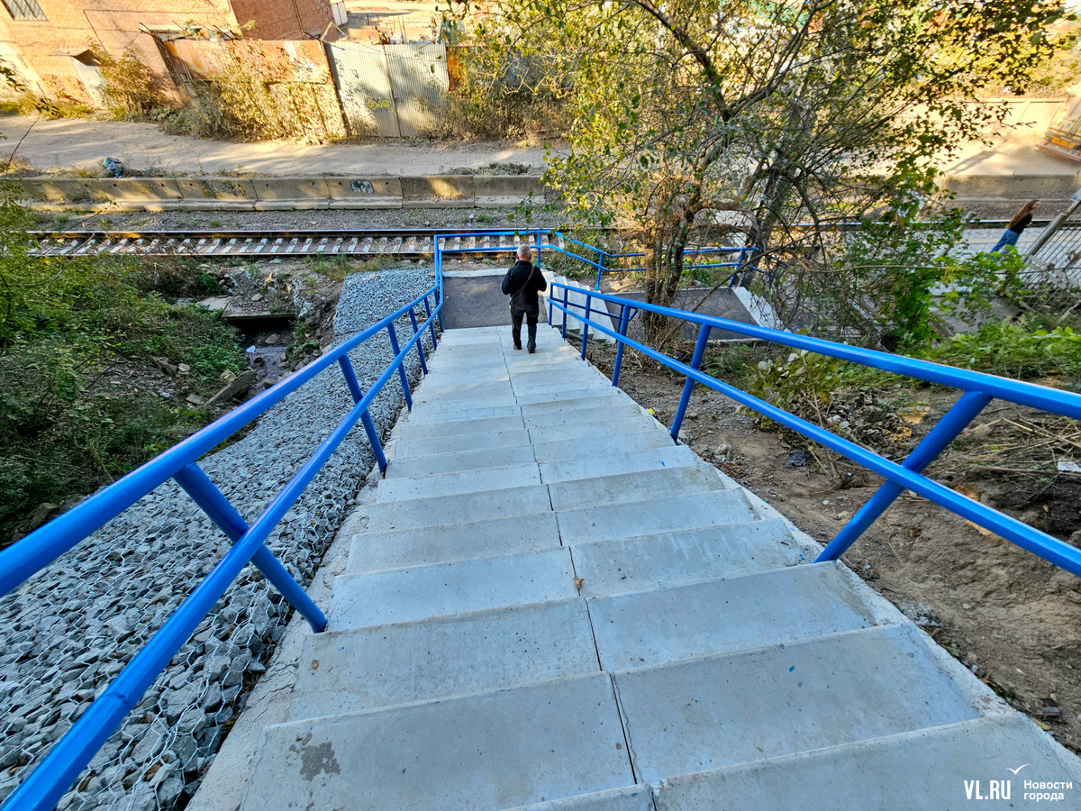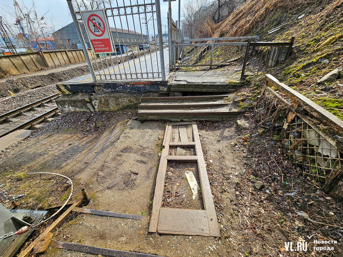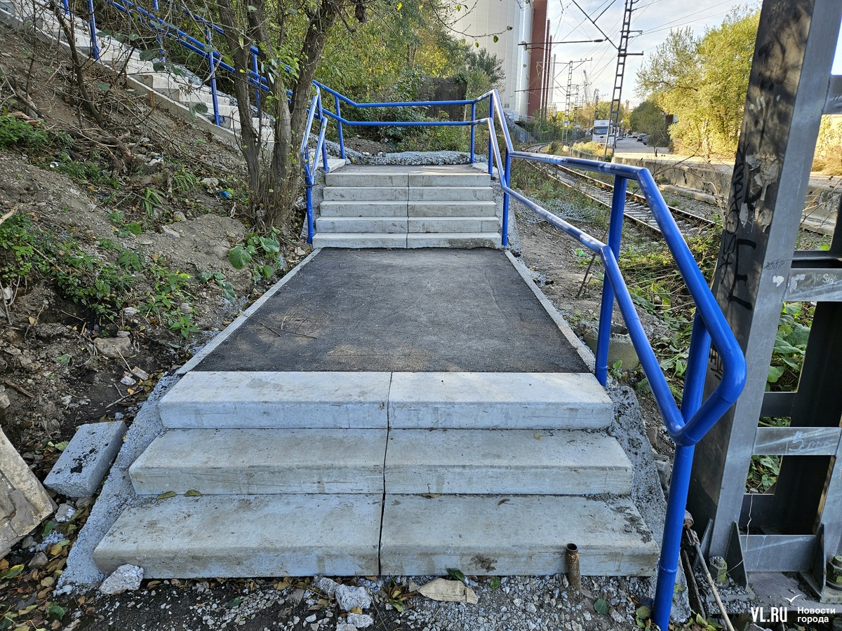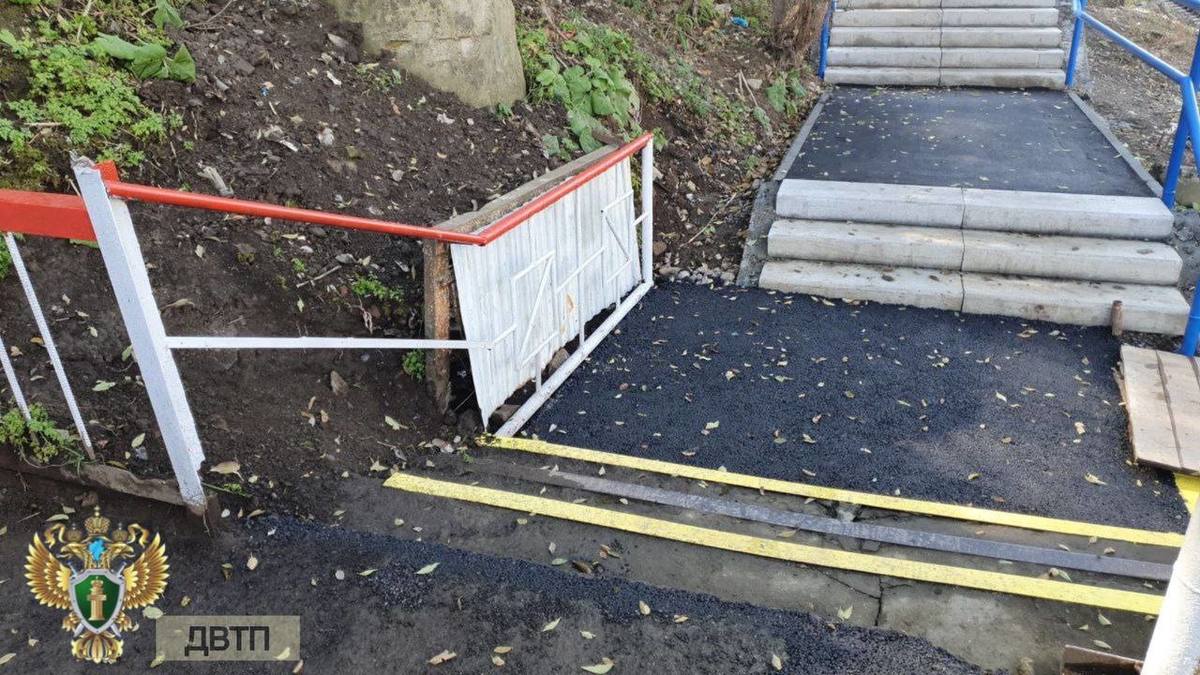 Обновлено 2 ноября: Кажется, в транспортной прокуратуре прочитали наш материал и поспешили устранить недочёты. В ведомстве отметили, что лестница находится за пределами полосы отвода железной дороги, на балансе ОАО «РЖД» не состоит, поэтому администрация Владивостока отремонтировала её в плановом порядке. В то же время ОАО «РЖД» не обеспечило плавное сопряжение указанного лестничного перехода с близлежащей платформой, в связи с чем начальнику Владивостокской дистанции пути Дальневосточной дирекции инфраструктуры ОАО «РЖД» прокуратура внесла представление. По результатам его рассмотрения тут провели ремонтные работы.