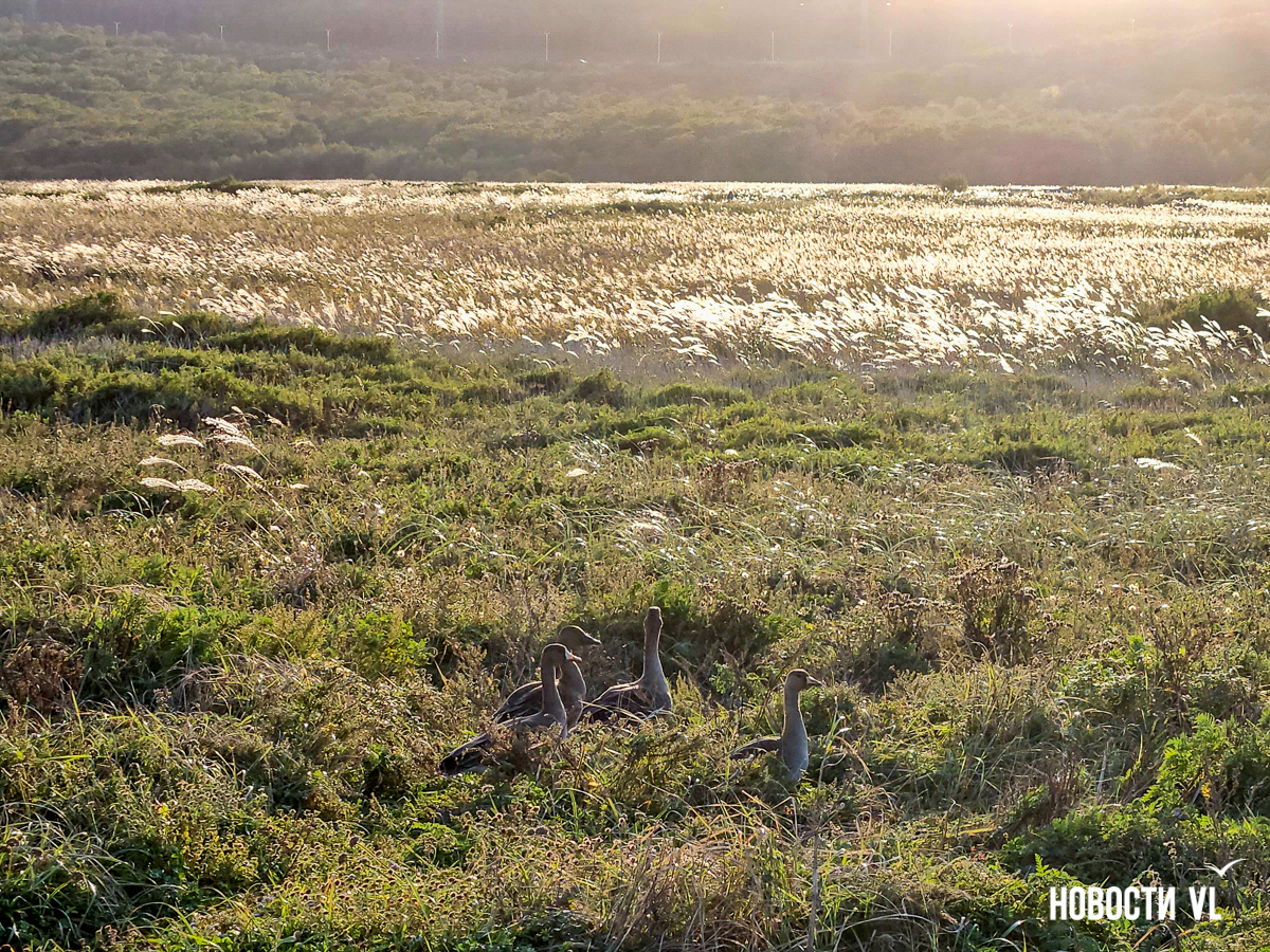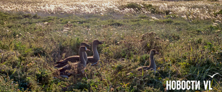 На мысе Ахлёстышева на острове Русский сейчас гуляют дикие гуси. Как долго они здесь останутся, неизвестно – это птицы пролётные. Но накануне фотокорреспонденту Новости VL удалось их снять: те вели себя мирно и подпустили достаточно близко.