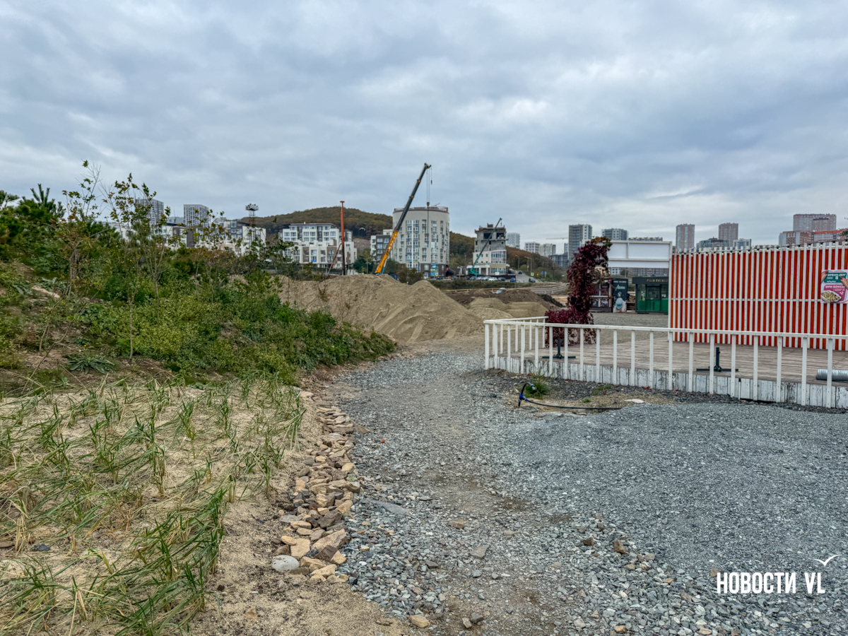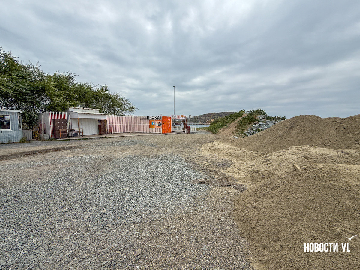 После завершения пляжного сезона прибрежную зону в районе бухты Патрокл закрыли для дальнейшей реновации. Этим летом там открывали небольшую демоверсию с душевыми и раздевалками, а сейчас приступили к масштабным работам на остальной территории. Забором огородили пустырь, который использовали в качестве парковки, экскаваторы выгребают основание бывших волейбольных площадок. На берегу тоже появился забор, а рядом в землю забивают сваи. Пока пройти к воде можно, но строители просят на время ремонта гулять в районе уже благоустроенного озера.