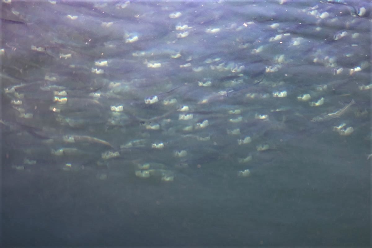 Как сообщает Приморский океанариум, уже вторую осень подряд иваси массово заходит в прибрежные воды на откорм. Стаи сардин держатся у берега до конца ноября и уходят в тёплые воды с началом зимы. Сейчас косяки сардин заполонили вольеры с животными, расположенные на акватории базы исследования морских млекопитающих в бухте Парис.
