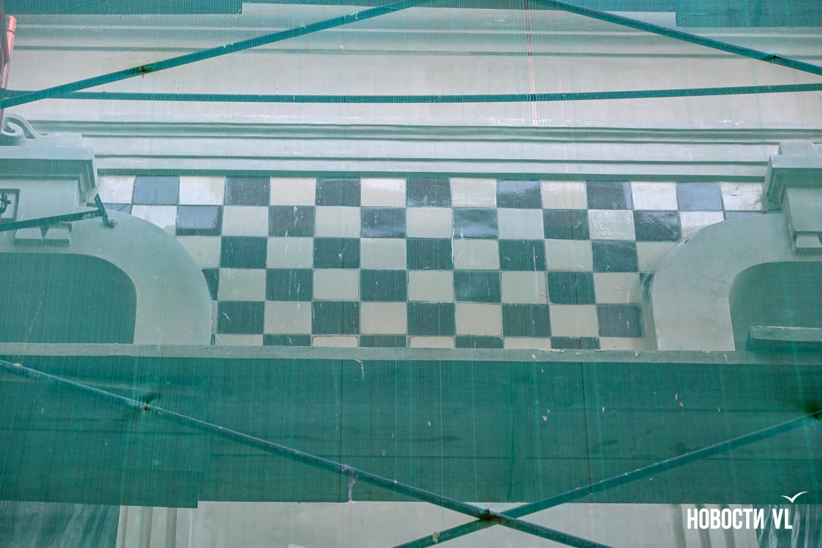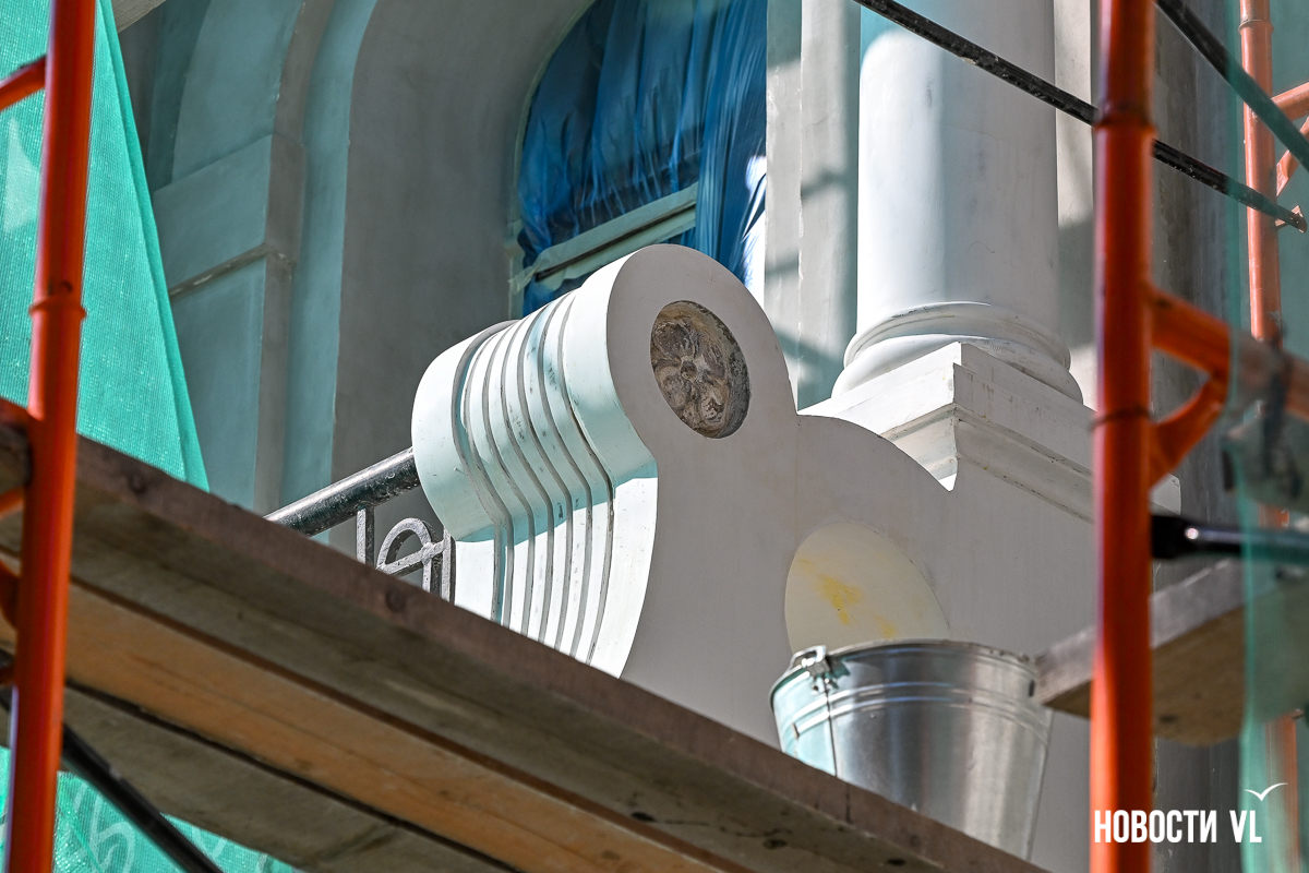 Как подчёркивает директор строительной компании, подобный вопрос он не стал бы выносить в публичную плоскость, если бы это касалось только внутренних работ, хотя и там сейчас работы приостановлены. Фасад – совсем другое дело. Утраченную глазурованную плитку на нём можно докомпановать и установить позже, а вот основное поле стен из штукатурки и отреставрированные декоративные элементы не покрасить перед зимой нельзя.