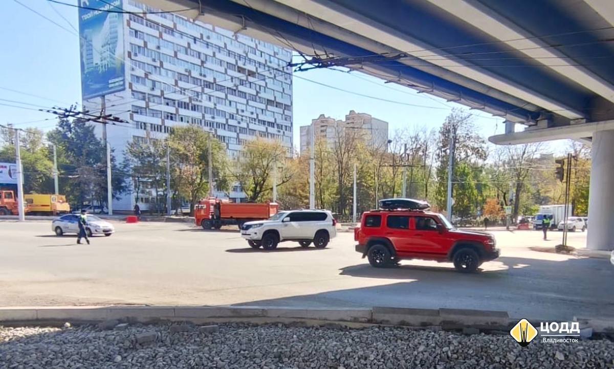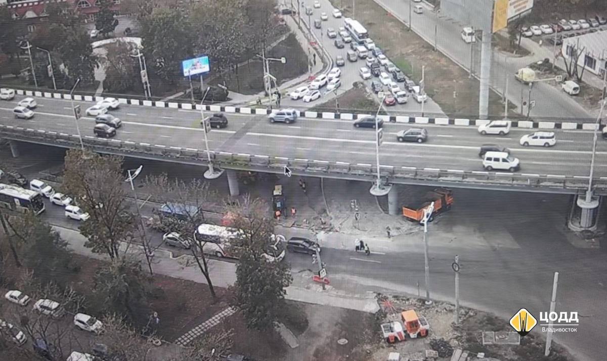 На перекрёстке Русской и 100-летия Владивостока во вторник, 21 октября, сначала перебили кабель светофора, а затем порвали троллейбусные провода. По всем направлениям собрались пробки.