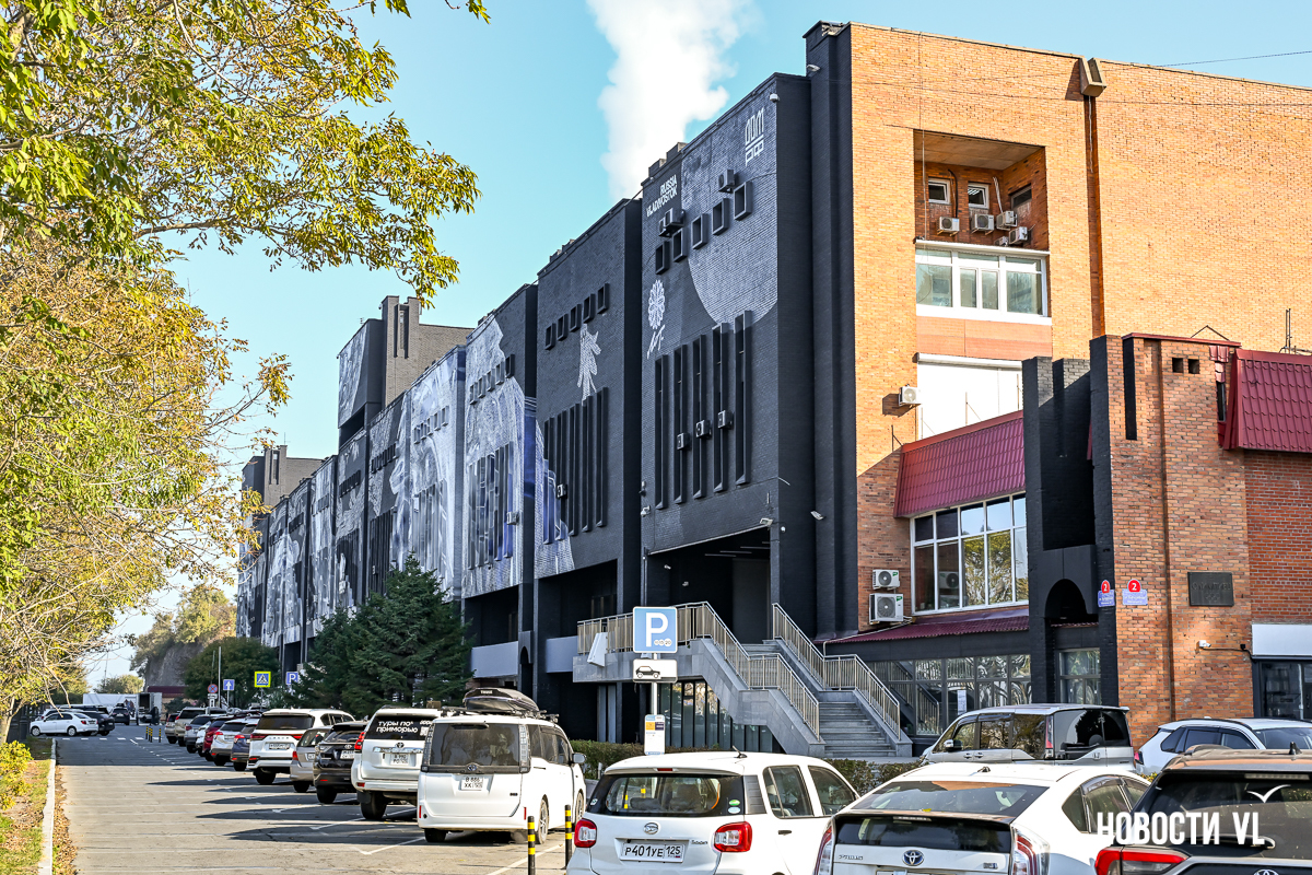 Напомним, что в этом году накануне Восточного экономического форума фасад выкрасили в радикально чёрный, вызвавший неоднозначную реакцию. Многие считали, что пятиэтажному зданию больше к лицу родной терракотовый кирпич. Перед обновлением даже проводили голосование, а выбранный из двух вариантов горожанами рисунок нанесла команда китайских художников.