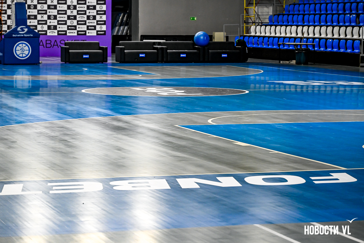 Справа в холле работы пока продолжаются – здесь будут кафе и буфет. Слева – вход в универсальный игровой зал на 360 мест. Здесь усилили освещение, обновили табло, нанесли новую разметку и обновили покрытие. Заместитель директора по эксплуатации спортивного оборудования Дмитрий Толстов рассказывает: это была профессиональная реставрация пола с нанесением специального лака, отвечающего требованиям Национальной баскетбольной лиги. В этом сезоне здесь уже проходят состязания по баскетболу и волейболу, а недавно проводили соревнования по художественной гимнастике. И в мини-футбол здесь тоже играют. Вообще, по словам министра спорта, комплекс позволяет проводить самые разные соревнования – и по игровым видам, и по различным видам единоборств.