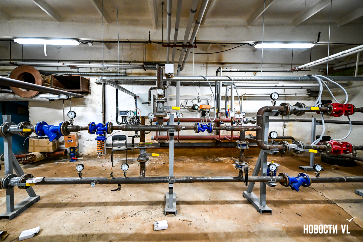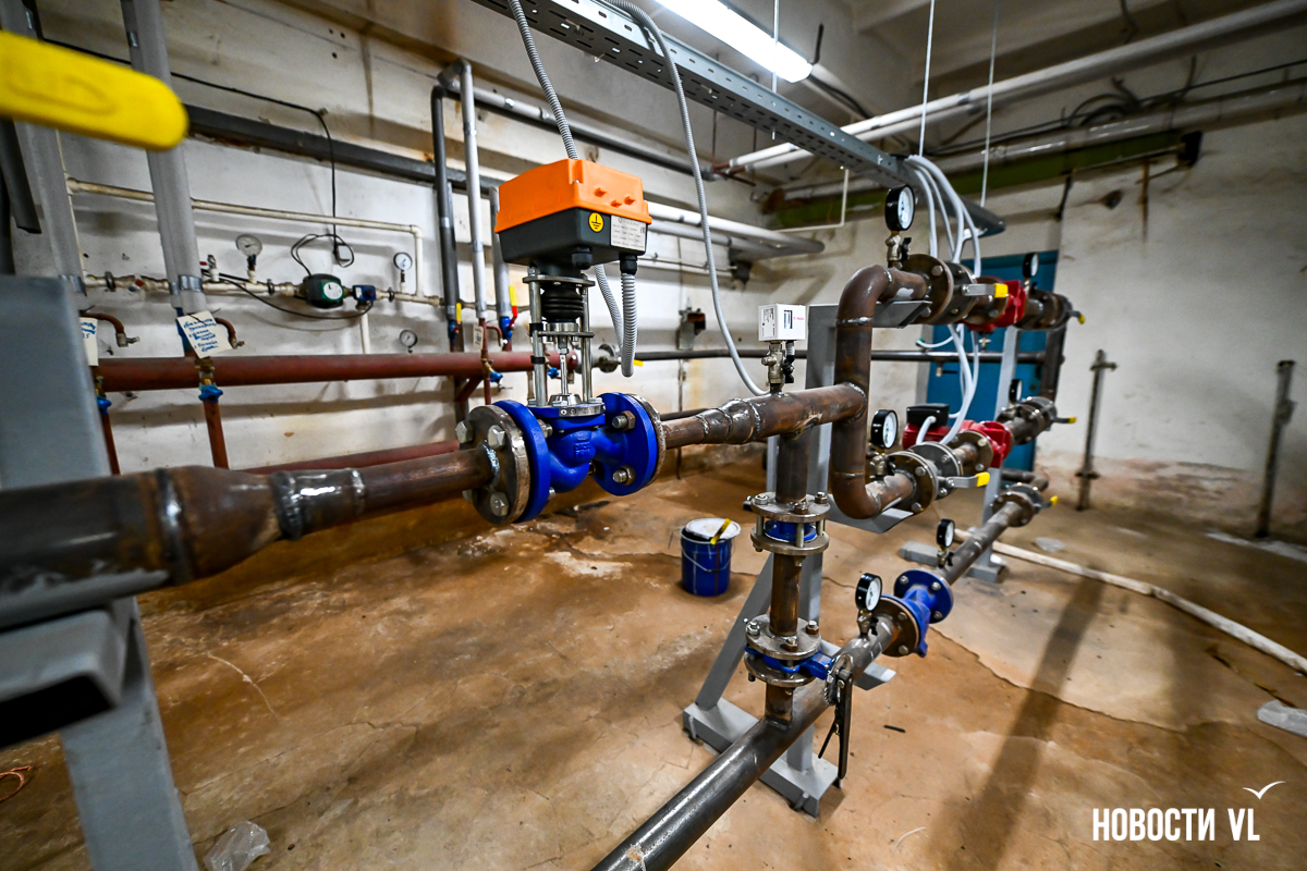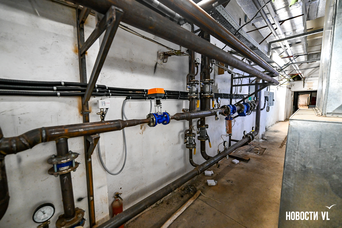 «Сейчас обновляется система отопления и горячего водоснабжения, – говорит Дмитрий Толстов. – Заканчивается монтаж оборудования, идёт пусконаладка. У нас системы для подогрева воды весили 5 тонн, их было 3. Теперь с этой задачей справляются два маленьких блока. Старую систему демонтируем».
