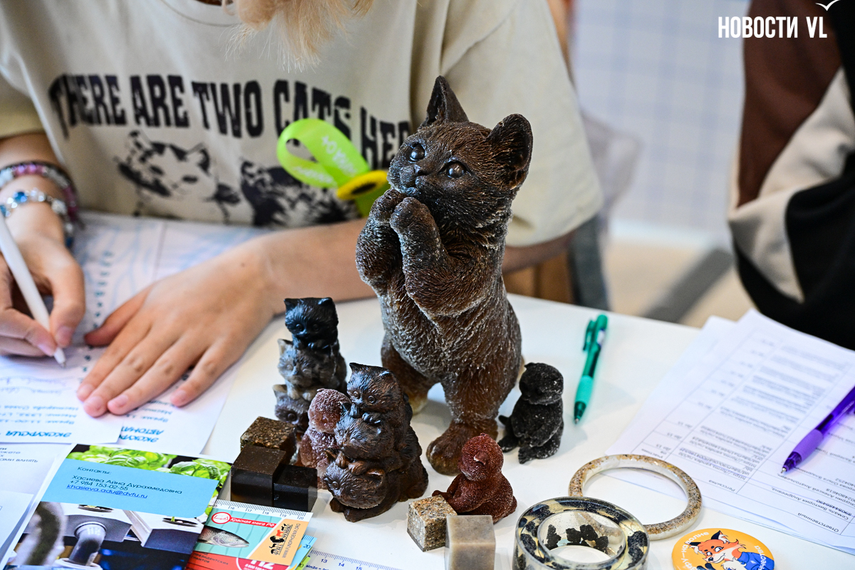 Не остался в стороне и Институт Мирового океана. Помимо робототехники и метеорологии, здесь удивляли самым неожиданным сувениром – фигурками котиков, сделанными из эпоксидной смолы и почвы (бурозём – бурые лесные почвы).