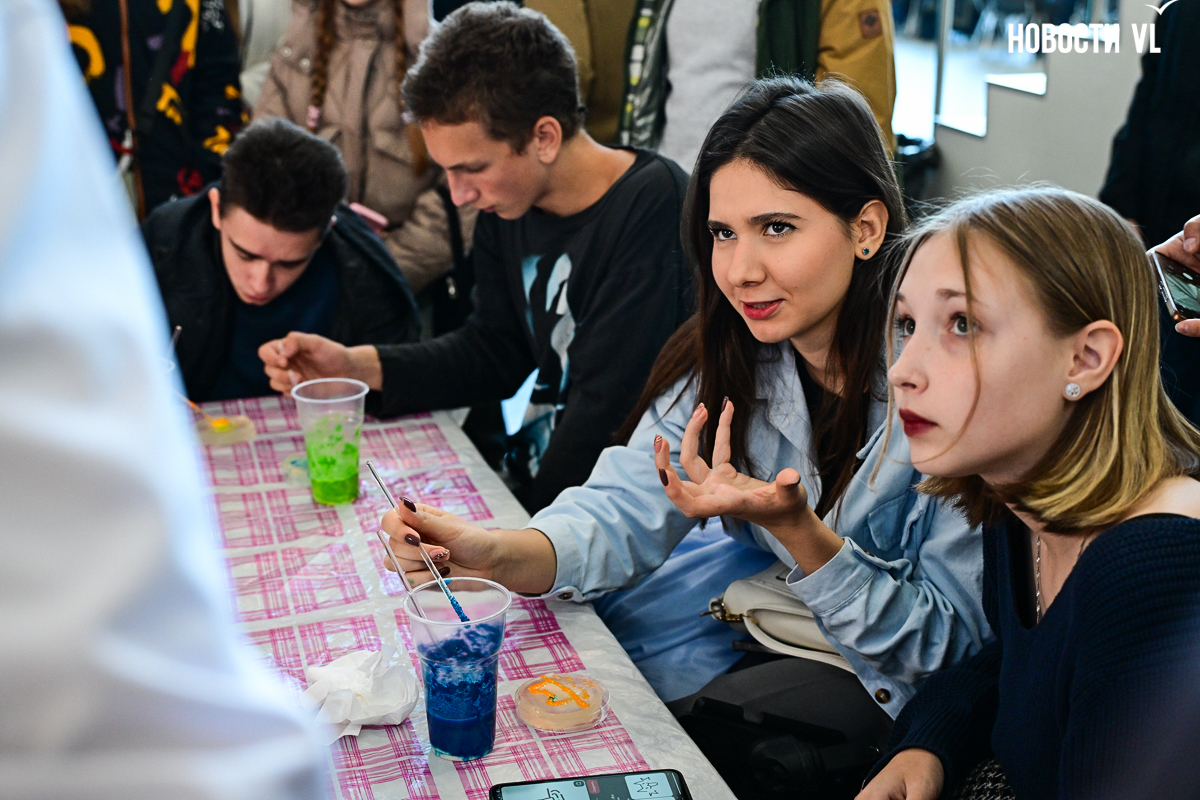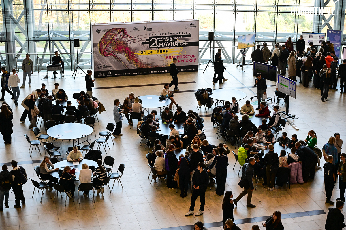 В пятницу, 24 октября, Дальневосточный федеральный университет принимал во Владивостоке гостей фестиваля «НАУКА 0+». Сотни школьников средних и старших классов спешили на встречу с будущим в корпуса на материке (Экипажная, 19 и Океанский проспект, 37) и на Русский остров, где расположились основные интерактивные площадки. Автобусы на остров были забиты под завязку будущими абитуриентами.
