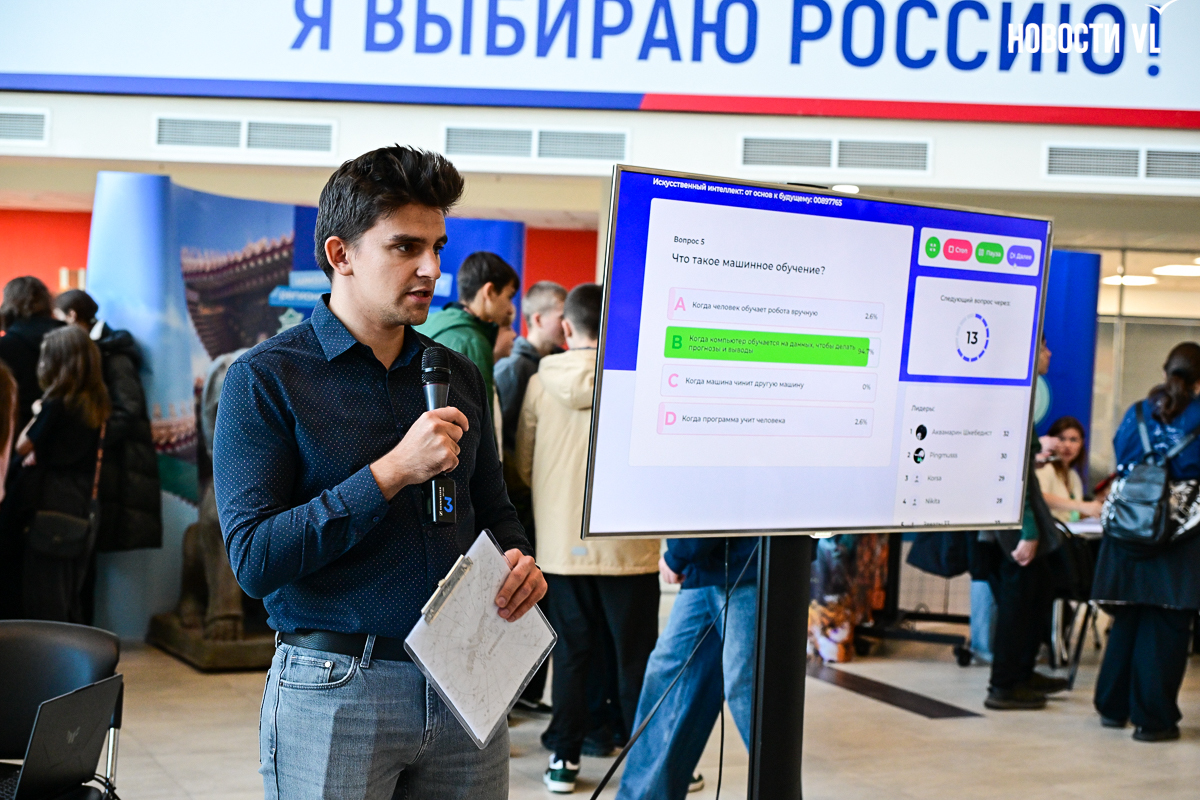 Пока одни изучали микромир, другие решали задачи из мира цифрового. Отдельный ажиотаж царил на интеллектуальном квизе, посвященном нейросетям и современным технологиям. Участникам пришлось не только демонстрировать эрудицию, но и включать логику, чтобы ответить, как ИИ меняет мир уже сегодня и какие профессии будущего он порождает.