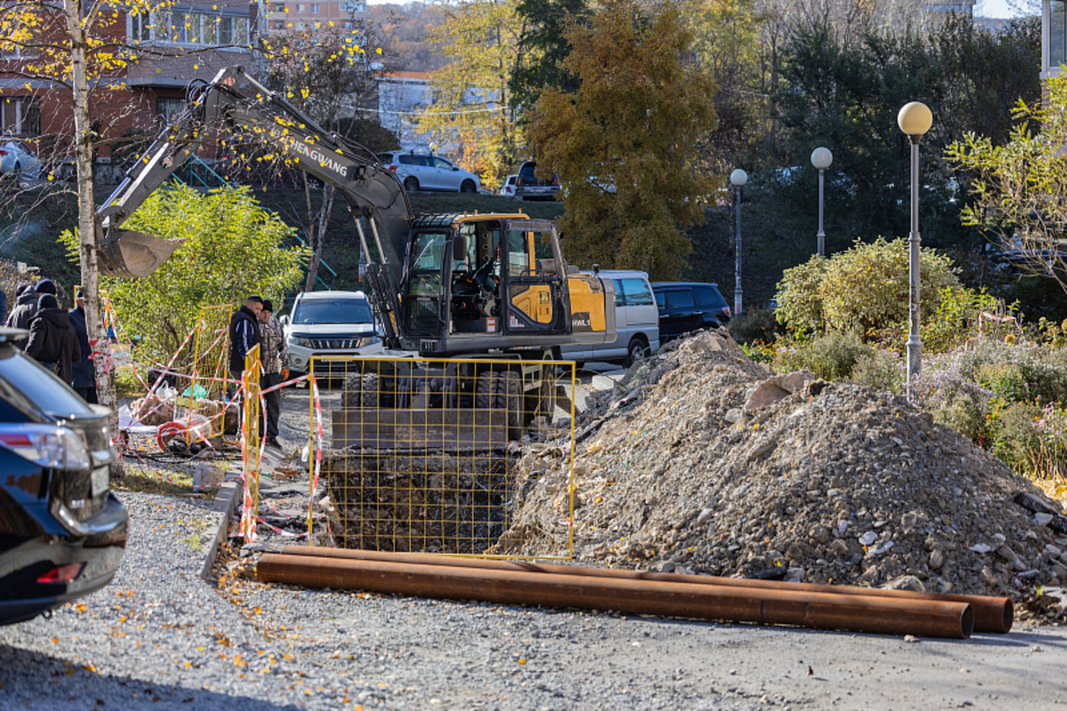 Напомним, в пятницу Новости VL уже писали про затянувшиеся раскопки на Горшкова от подрядчика Примводоканала. Тогда же корреспонденты обратили внимание на соседние раскопки. Правда, тогда рядом не было никаких рабочих, а с одной из труб капала как раз тёплая вода. По словам местных жителей, траншею раскопали 20 октября после жалоб местных жителей, что отопление к ним не дошло.