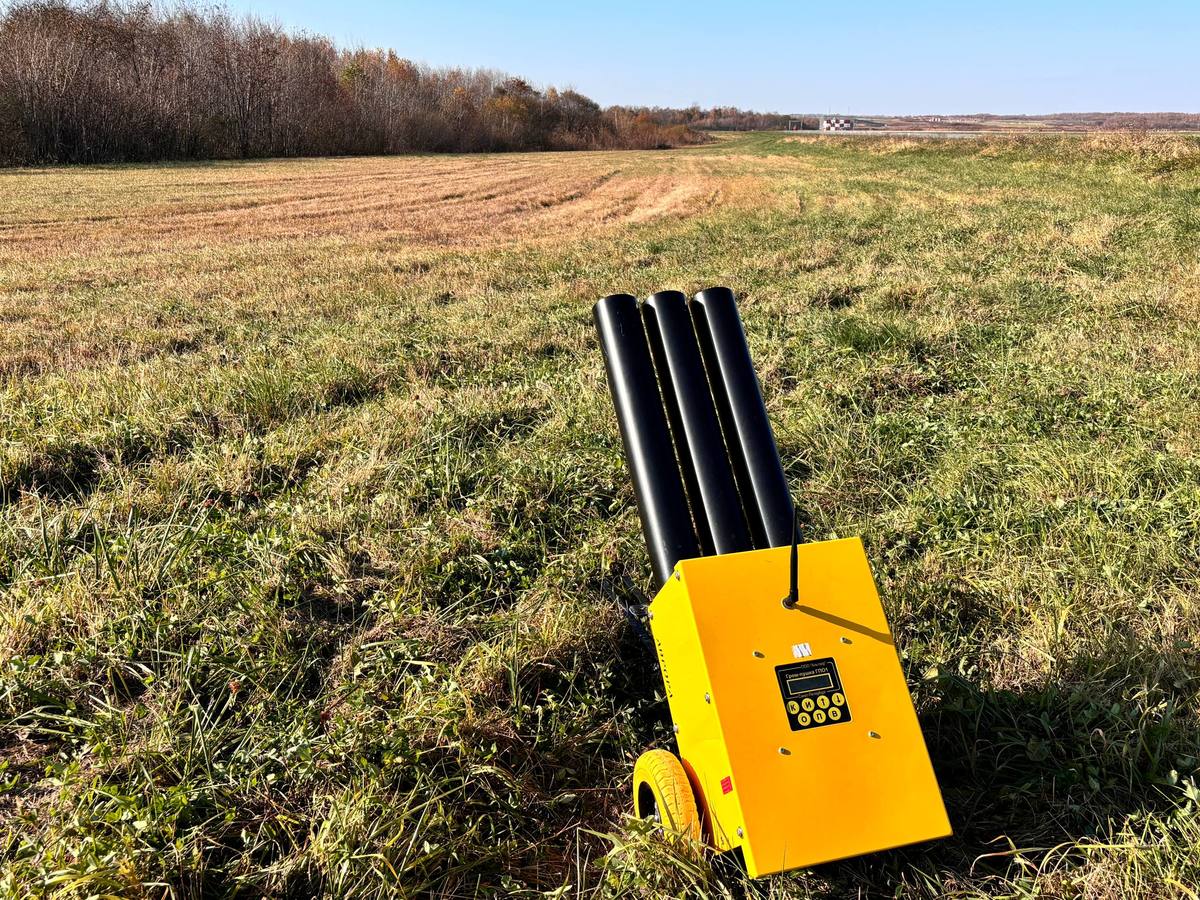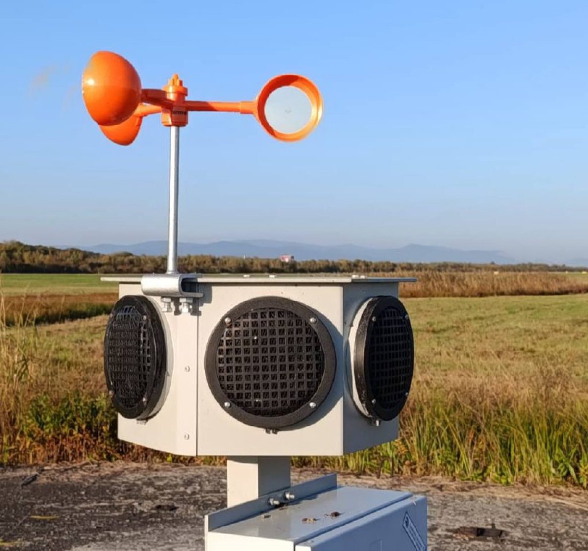 Новые устройства равномерно распределили по периметру лётного поля, они должны сделать территорию непривлекательной для птиц и животных.