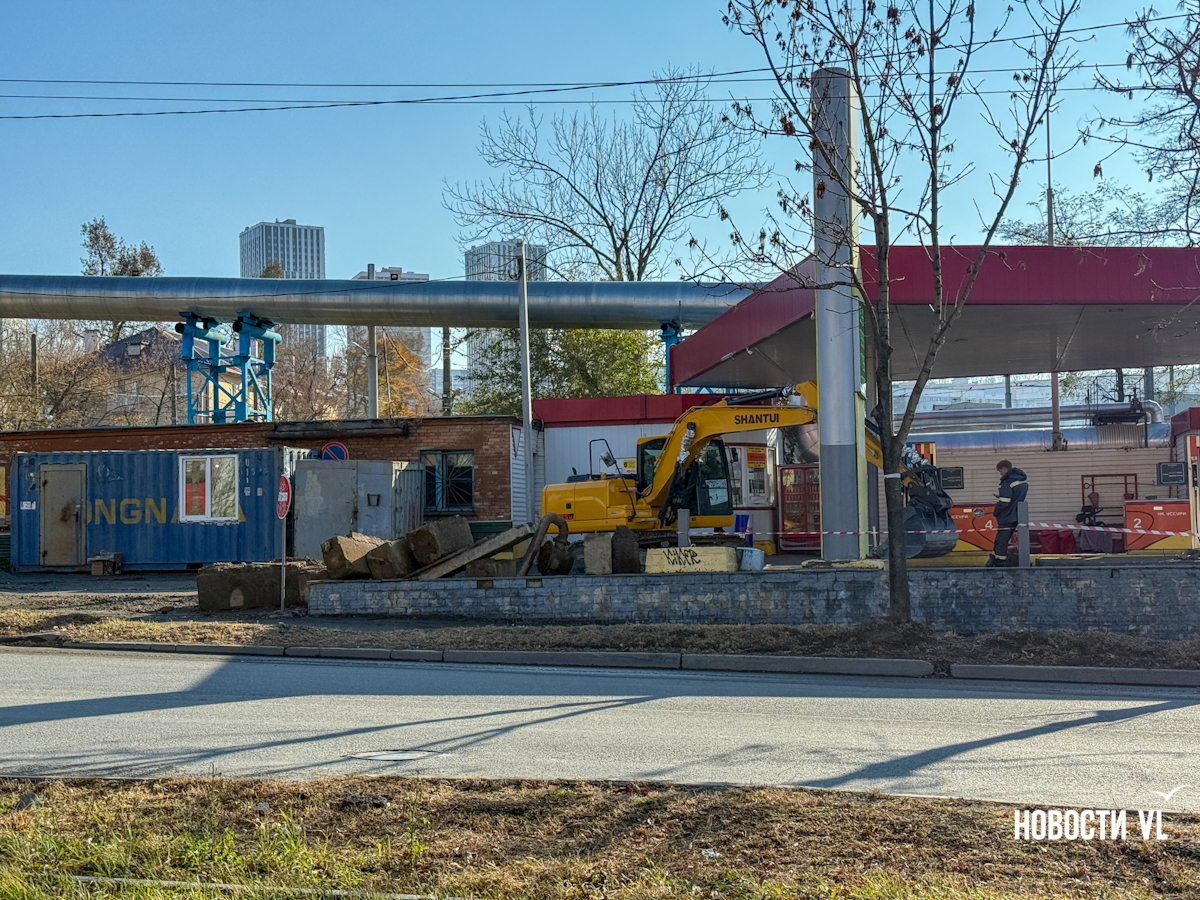 Сейчас заправка НК «Уссури» закрыта, вся её территория огорожена сигнальной лентой, а на въезде и выезде припаркованы экскаваторы, которые разрыли асфальт. Всего должны заменить 272 метра труб, сообщили в Примводоканале.