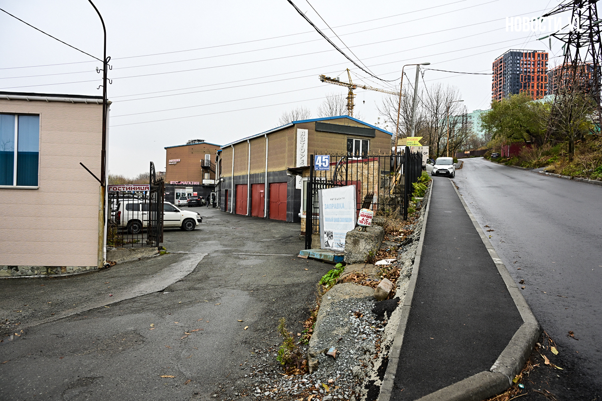 На Окатовой, 45 находится комплекс «Регион» – гостиница, коммерческие и спортивные организации, в том числе Приморская федерация спортивной аэробики, автосервисы, производственные компании. Он на этой территории находится уже больше десяти лет, и прежде его законность под сомнение не ставилась. Рядом, на Кипарисовой, 45, находится долгострой. Вся территория находится в санитарно-защитной зоне промышленного пищевого предприятия, а также в зоне КРТ. Проекта планировки территории здесь нет.