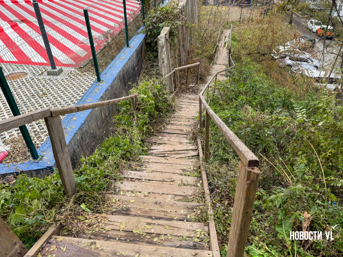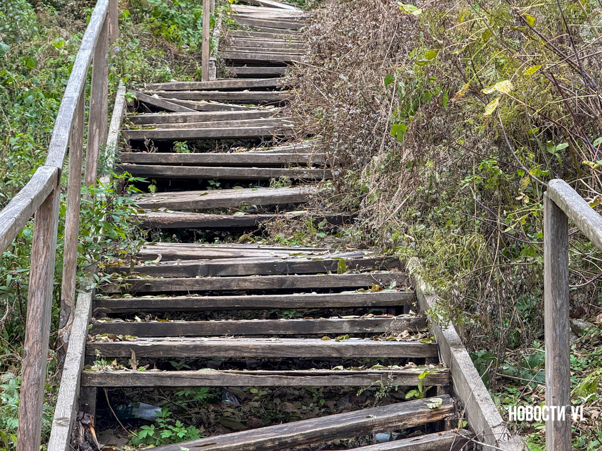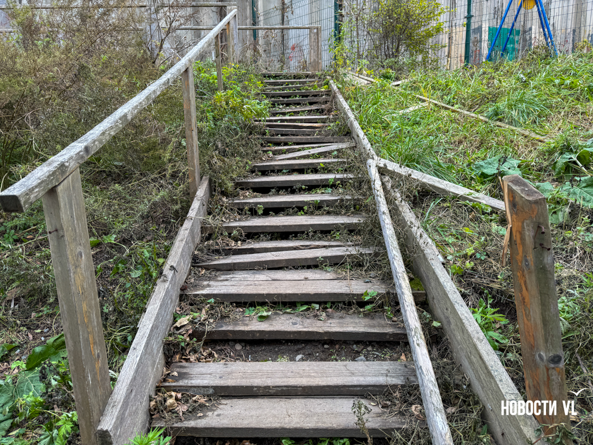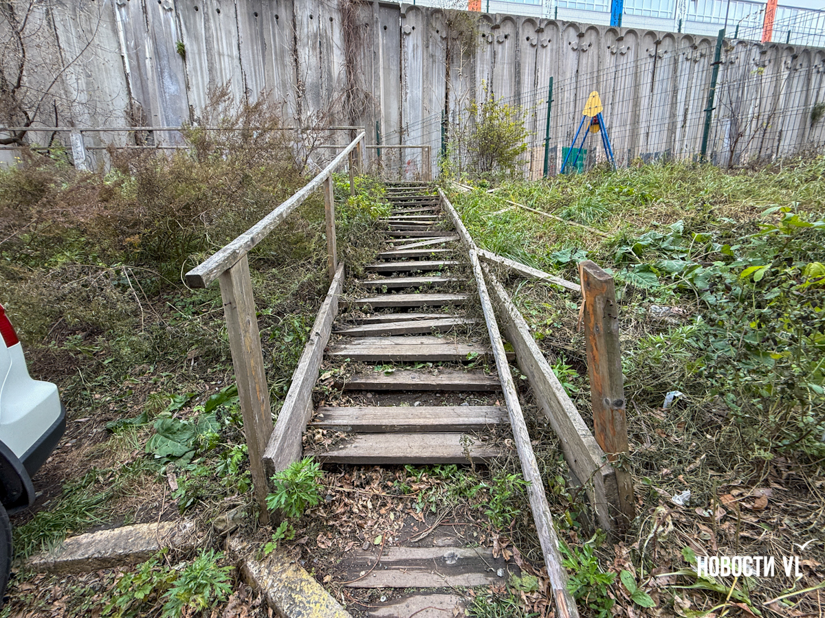 Корреспондент Новостей VL прошёлся по этой полосе препятствий и на финишной прямой встретил женщину, которая рассказала, что на её памяти лестницу никто и никогда не ремонтировал, но другого пути, более короткого, нет.