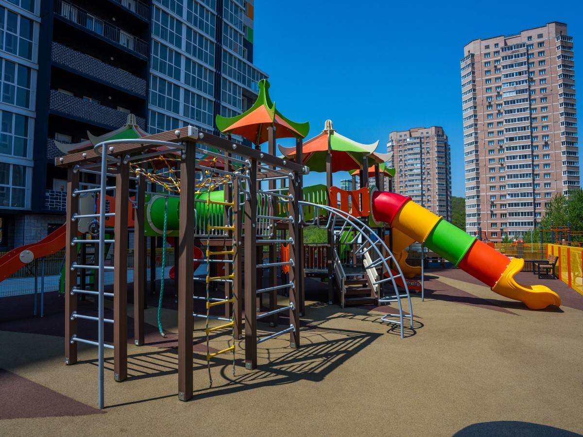 На территории организованы современные детские и спортивные площадки с качественным и безопасным оборудованием.