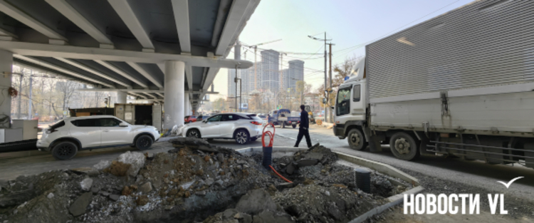 «Мёртвые» пробки во Владивостоке в последние дни – заслуга не только изменений в дорожном движении на гостевом маршруте, но и ремонта перекрёстка Русской и проспекта 100-летия. Именно здесь, у путепровода Второй Речки, пробка в загородную сторону и заканчивается. Дорожные службы здесь продолжают в спешном темпе «разрушать старый мир до основанья», чтобы завершить работы до конца года. Поэтому на светофоре возле Русской, 21а можно простоять час, а чтобы повернуть в сторону автовокзала, осталась всего одна полоса.