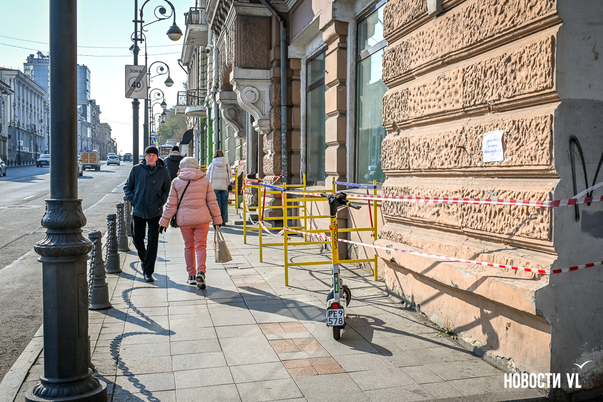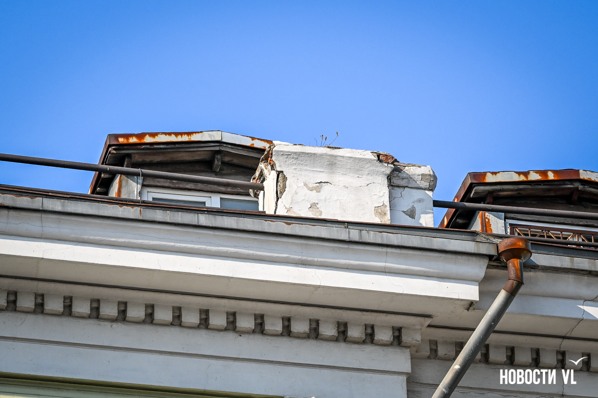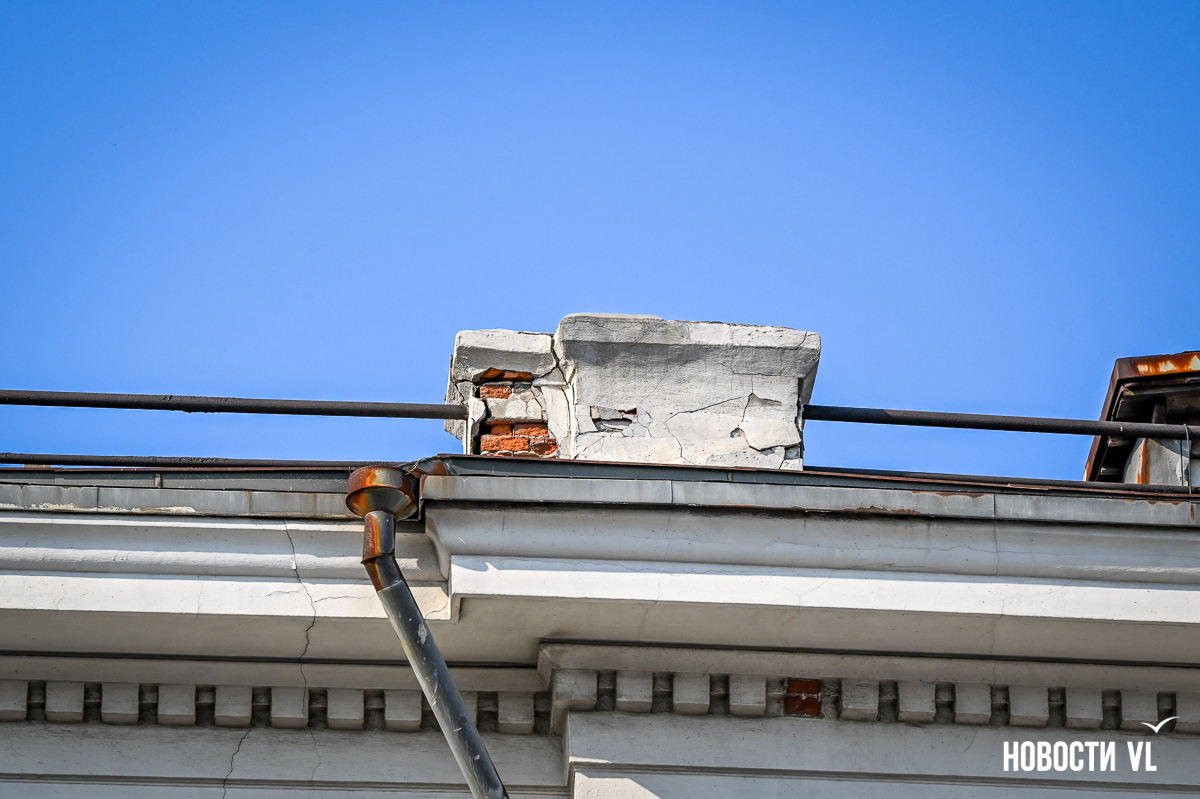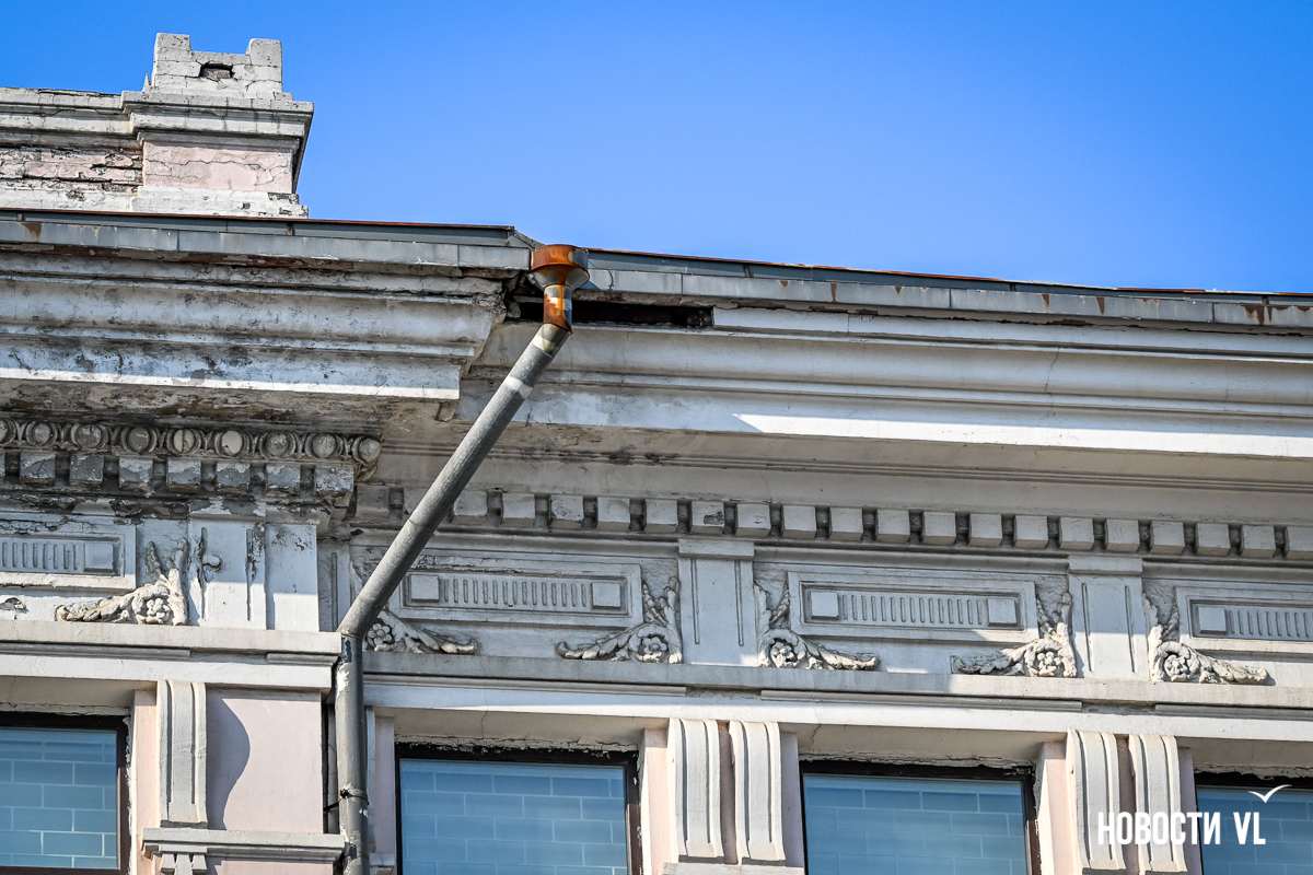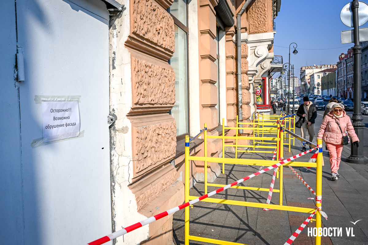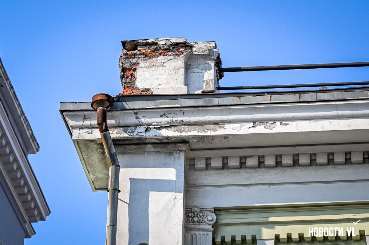 В конце прошлой недели жители Владивостока обратили внимание на то, что около главного корпуса музея им. Арсеньева на Светланской и соседних зданий на Алеутской огородили часть тротуара и повесили предупреждающие таблички о возможном обрушении фасада. И действительно – на тротуаре регулярно оказываются кусочки штукатурки, пока что мелкие. В пресс-службе Музея-заповедника истории Дальнего Востока им. В. К. Арсеньева уточнили, что сейчас готовится реставрация всех трёх зданий – уже проведено их техническое обследование. После улаживания всех формальностей и выделения финансирования реставрировать будут и фасады, и крыши.