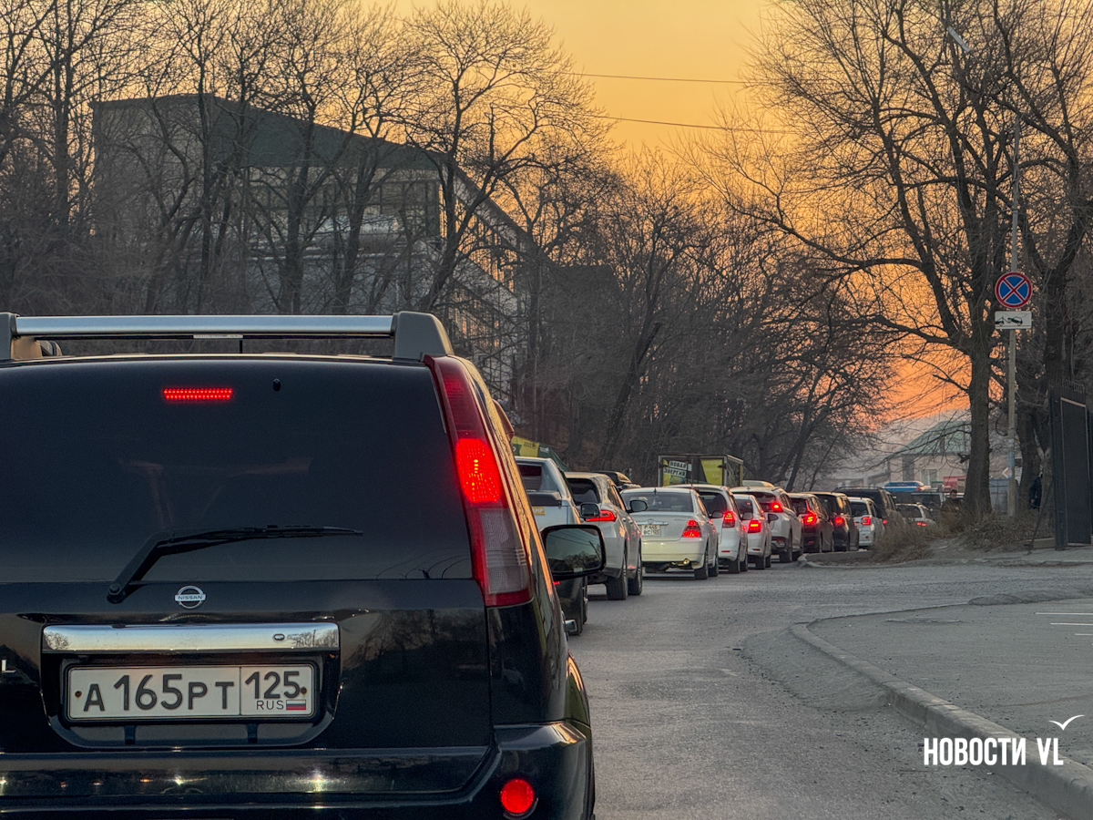Корреспондент Новостей VL.ru приехал на Снеговую с утра пораньше – пробка начала собираться к 08:00. Заблокированная полоса вынуждает водителей, едущих прямо со Снеговой, смещаться в левую сторону и ехать таким образом два перекрёстка – поворот на Рудневский мост и поворот на Карьерную. Пробка собирается как раз из-за этого – кому-то нужно повернуть, а очередь за ним терпеливо ждёт.