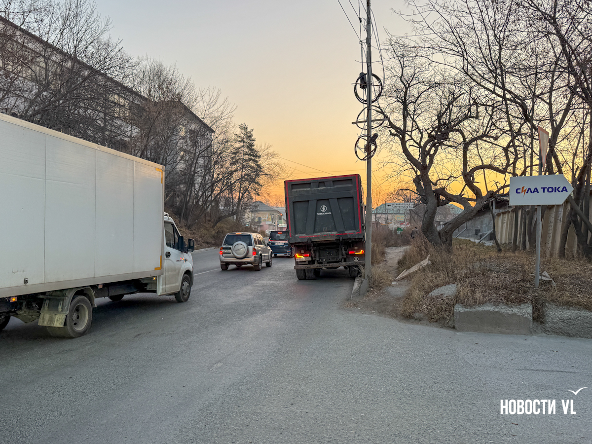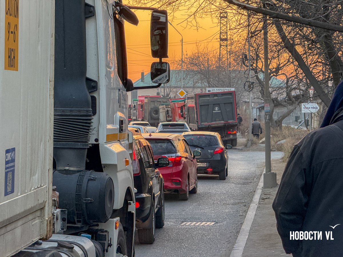 Во Владивостоке на несчастливой для автомобилистов Снеговой стали собираться пробки из-за припаркованных самосвалов, которые ждут очереди на отгрузку. Колонна растягивается почти на километр. Горожане, которые ездят через эту улицу на работу, говорят, что теперь путь занимает в два раза больше времени. Сами водители самосвалов проблему понимают, но решить её то ли не могут, то ли не хотят.
