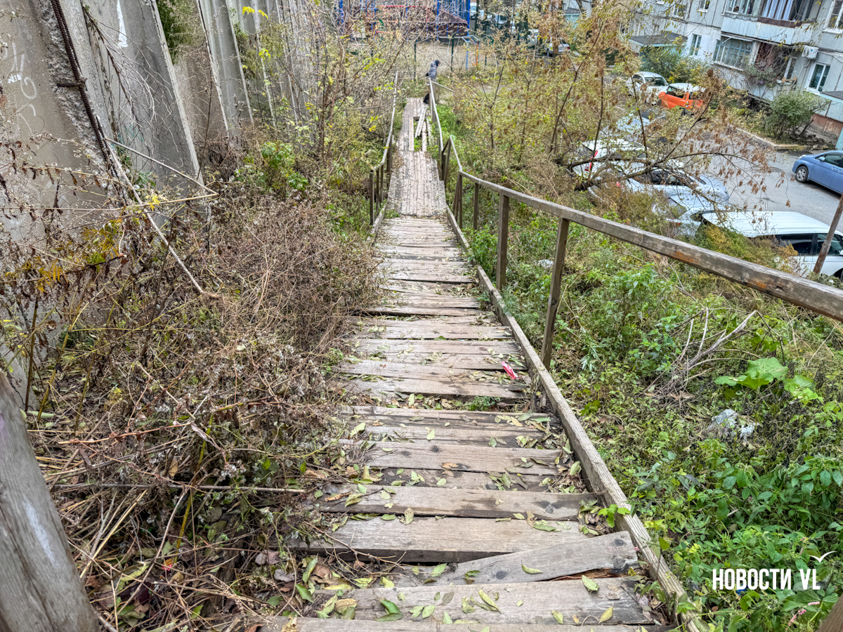 На данный момент провести реконструкцию лестницы планирует строительная компания «Система», которая ранее возвела на Жигура ЖК «Мёд», но достаточно далеко от этого места. В компании Новостям VL рассказали, что задачу на благоустройство лестницы они получили недавно, сейчас проект на стадии проработки идеи. Когда именно лестницу приведут в порядок и из каких материалов её сделают, пока не могут сказать.