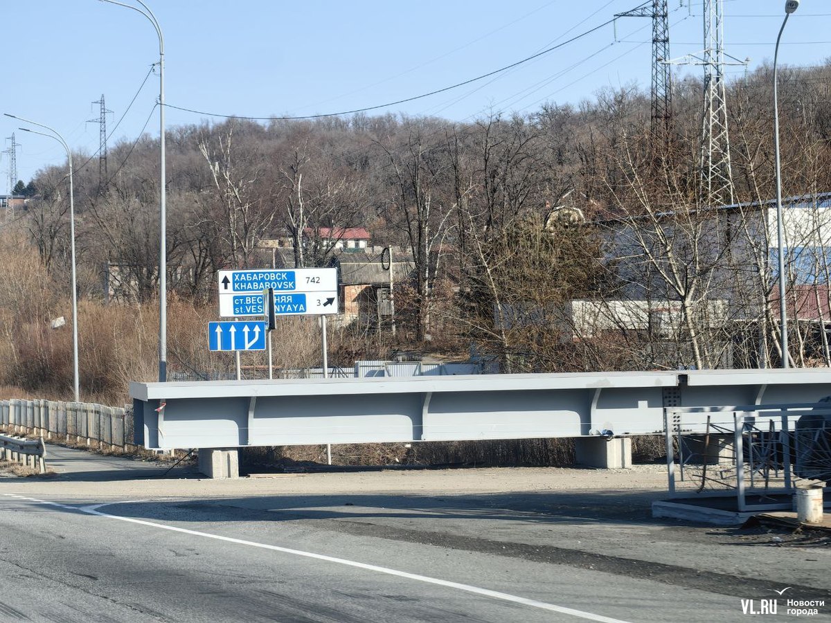 В краевом министерстве транспорта и дорожного хозяйства Приморского края сообщили, что задержка произошла из-за долгого изготовления и поставки балки пролётного строения от завода-изготовителя. Она уже прибыла, подрядчик её собирает. Кроме этого, к монтажу подготовлены опоры, окрашены все металлические конструкции, устроены лестничные подходы с укладкой асфальтобетонного покрытия.