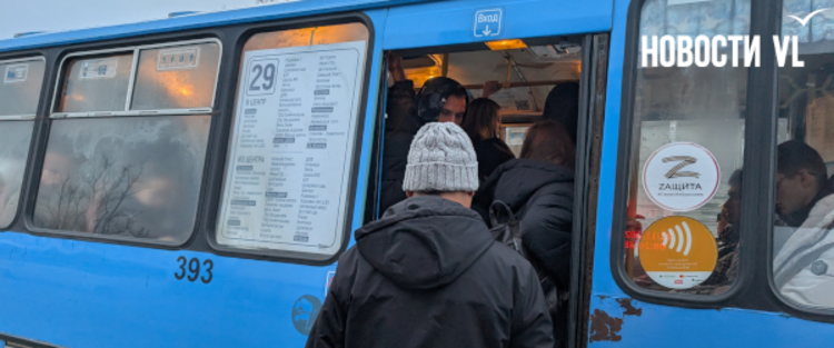 К «Южным воротам» подъезжает пазик 29-го маршрута – с такими же запотевшими окнами, через которые еле проглядываются толпы стоящих в неудобных позах пассажиров. Студентам ДВФУ ещё, можно сказать, повезло – жителям Русского острова приходится добираться до материка всё в тех же забитых автобусах, но не в низкопольных производства МАЗ, а в дребезжащих, завывающих и подпрыгивающих пазиках.