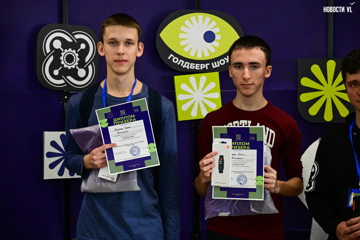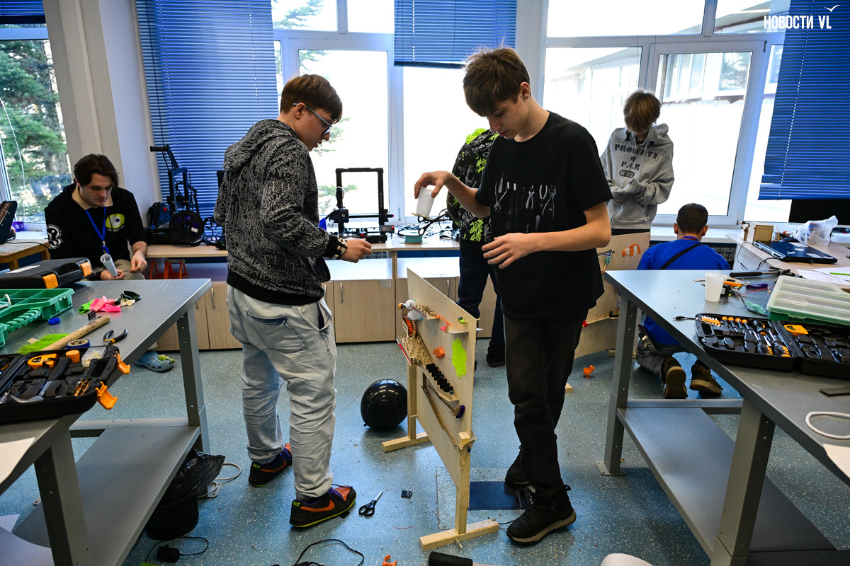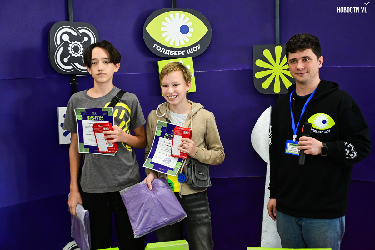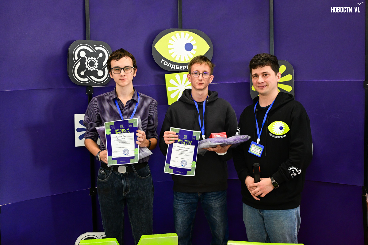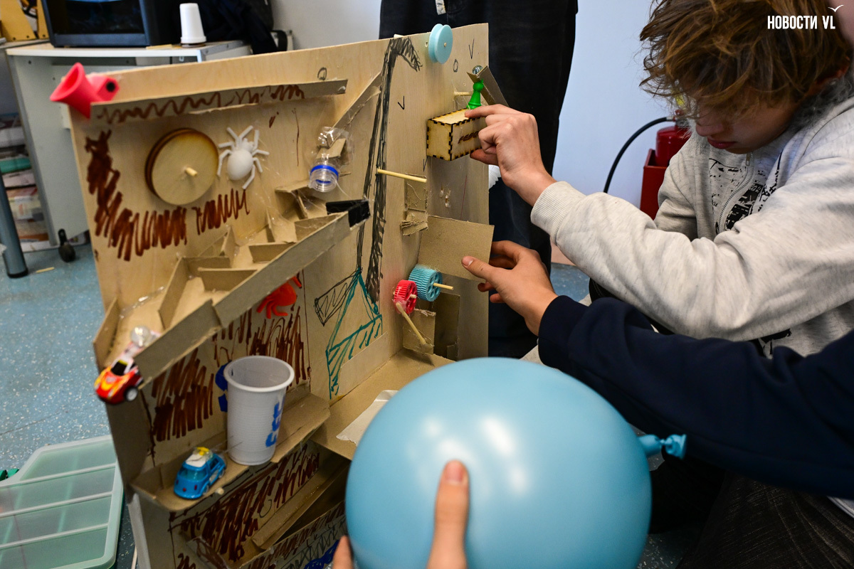 Сегодня во владивостокском «Кванториуме» было шумно, людно и весело – юные изобретатели показывали машины Голдберга, которые они смастерили из подручных средств и в игровой среде. Промышленные инженеры создали гигантские системы с канатами, воронками и лестницами, промышленные дизайнеры – креативные 3D-композиции, вдохновлённые морскими просторами, а айтишники – объёмные машины Голдберга уже в игровой среде. Члены жюри оценили все работы, исходя из оригинальных критериев, а участники лучших команд получили не только грамоты, но и полезные технологичные призы.