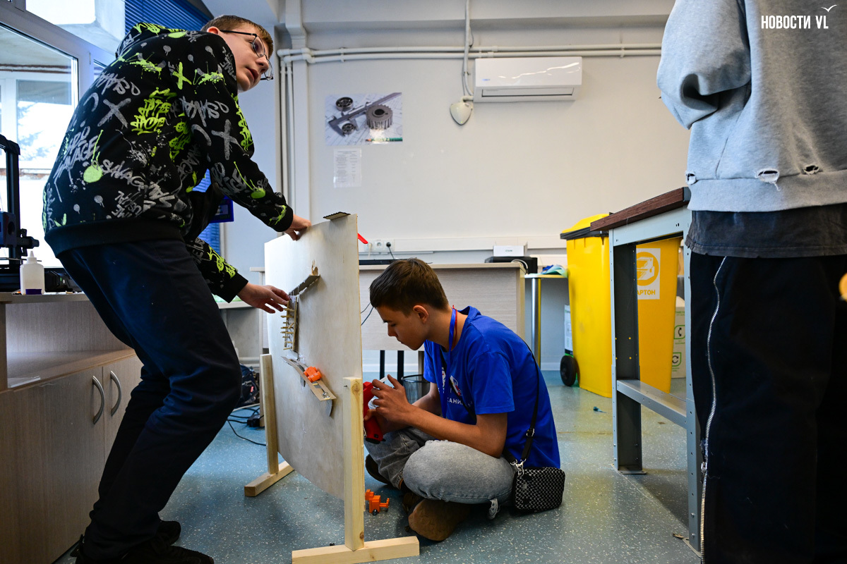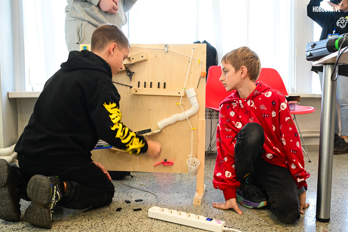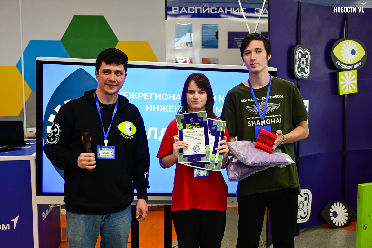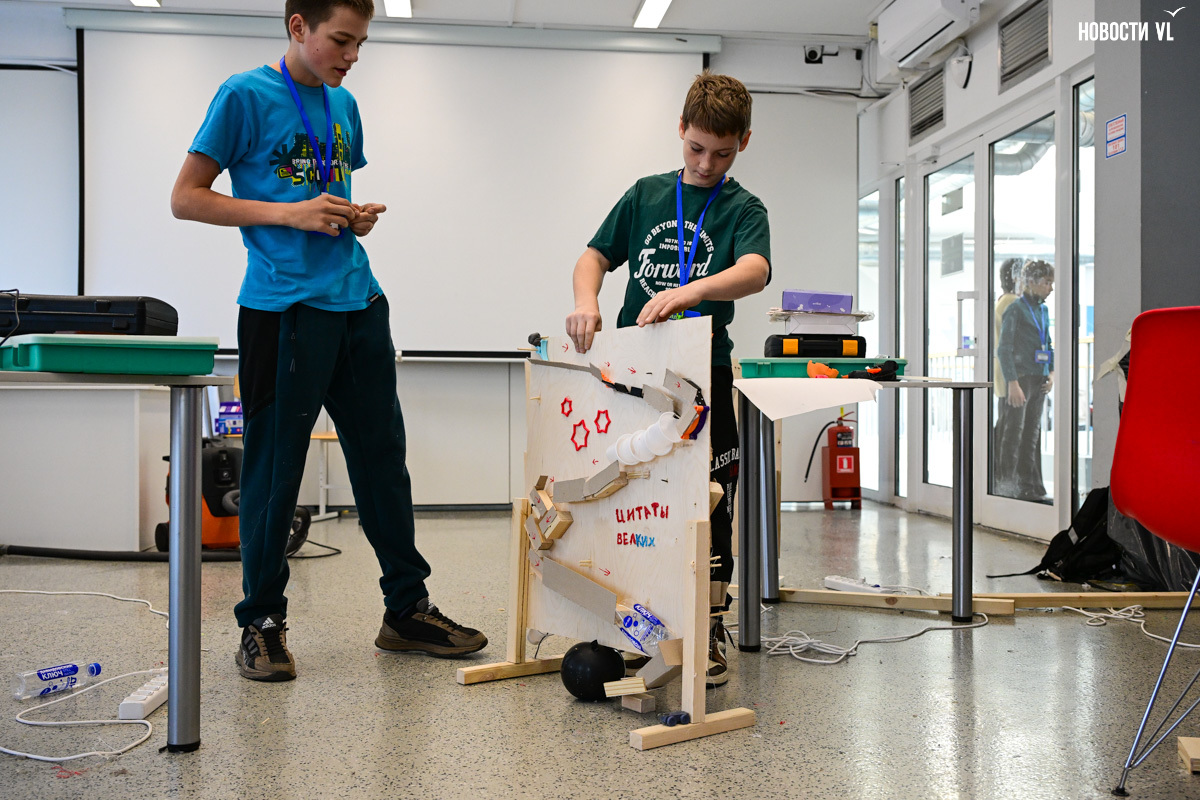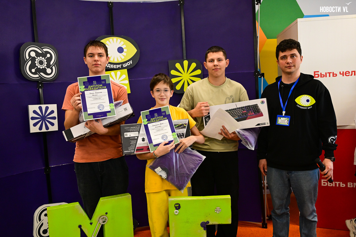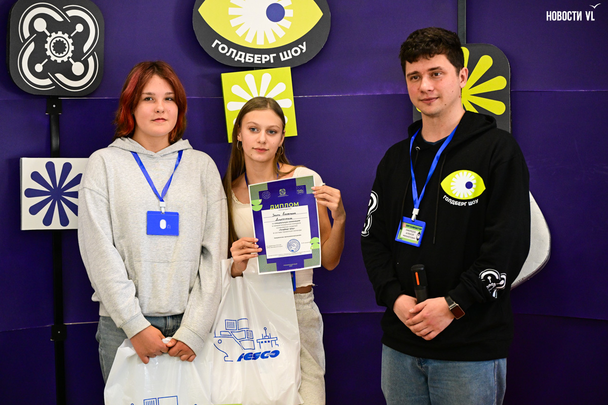 Сегодня во владивостокском «Кванториуме» было шумно, людно и весело – юные изобретатели показывали машины Голдберга, которые они смастерили из подручных средств и в игровой среде. Промышленные инженеры создали гигантские системы с канатами, воронками и лестницами, промышленные дизайнеры – креативные 3D-композиции, вдохновлённые морскими просторами, а айтишники – объёмные машины Голдберга уже в игровой среде. Члены жюри оценили все работы, исходя из оригинальных критериев, а участники лучших команд получили не только грамоты, но и полезные технологичные призы.