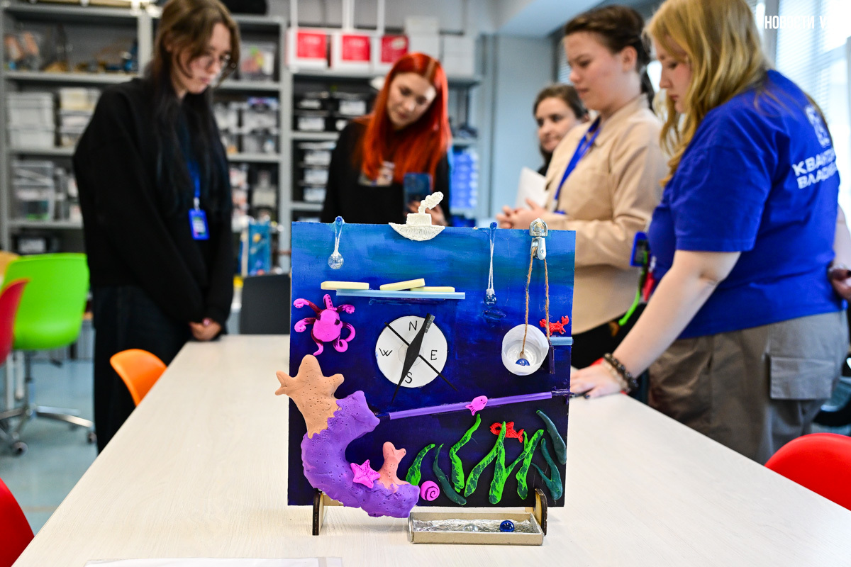 «Оценивать очень сложно – потому что есть, например, шаги, которые сложно оценить, и спорные моменты. Но в целом работы очень достойные, креативные, красочные. Видно инженерный подход у ребят. У нас промышленный дизайн – ребята создавали более функциональный какой-то объект, настольную версию машины Голдберга. У нас из критериев – дизайн инженерной модели самой, наличие обязательного элемента – навигационного прибора – ребята должны были придумать либо штурвал, либо компас, – плюс количество попыток, ну и количество шагов – чем больше шагов, тем круче», – объясняют члены жюри этого направления.