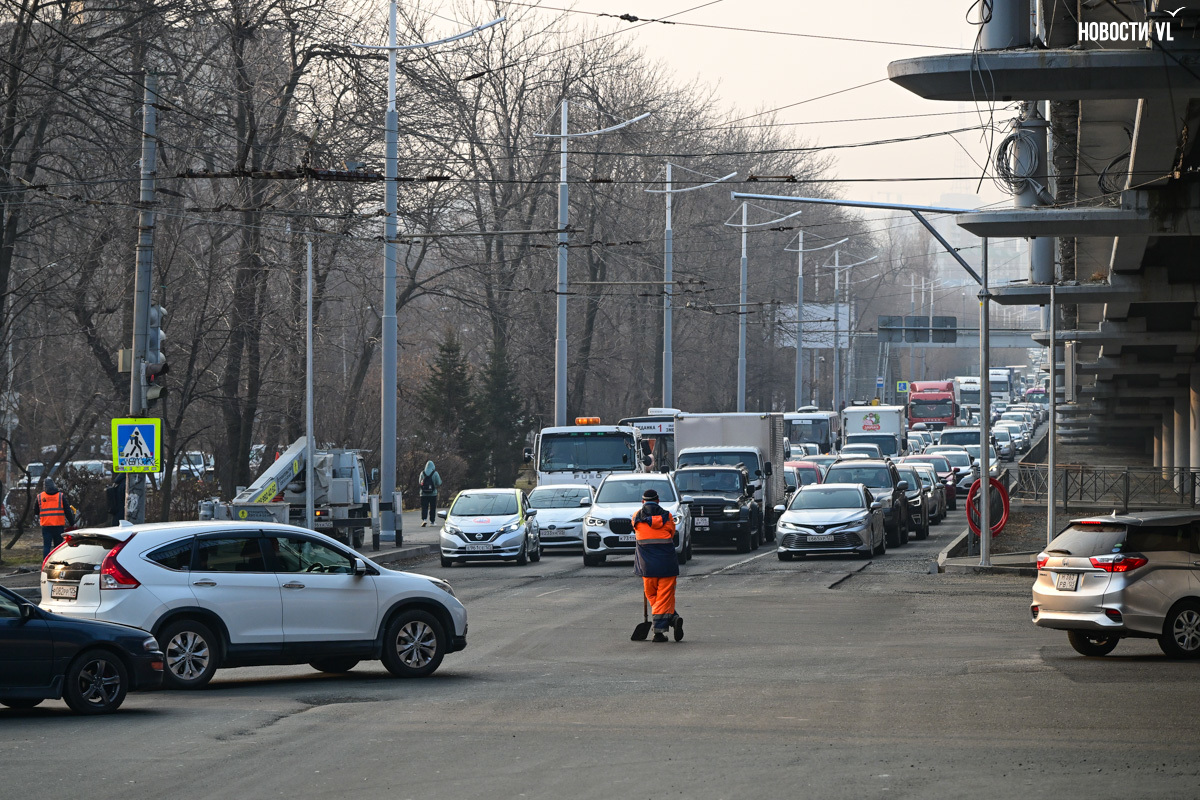 10:30: Как сообщают корреспонденты Новостей VL, эксперимент с новой схемой движения на Второй Речке уже начался. Люди в спецовках ходят по проезжей части и показывают, куда надо ехать. Один дорожник вынес знак со стрелкой и перегородил привычный выезд. Кажется, в районе перекрёстка наблюдаются проблемы с мобильным интернетом. Водители шутят, это чтобы было меньше жалоб. Пробка в сторону центра сейчас начинается от Зари, причём стоит сразу четыре полосы, что довольно показательно.