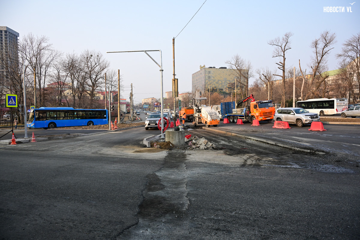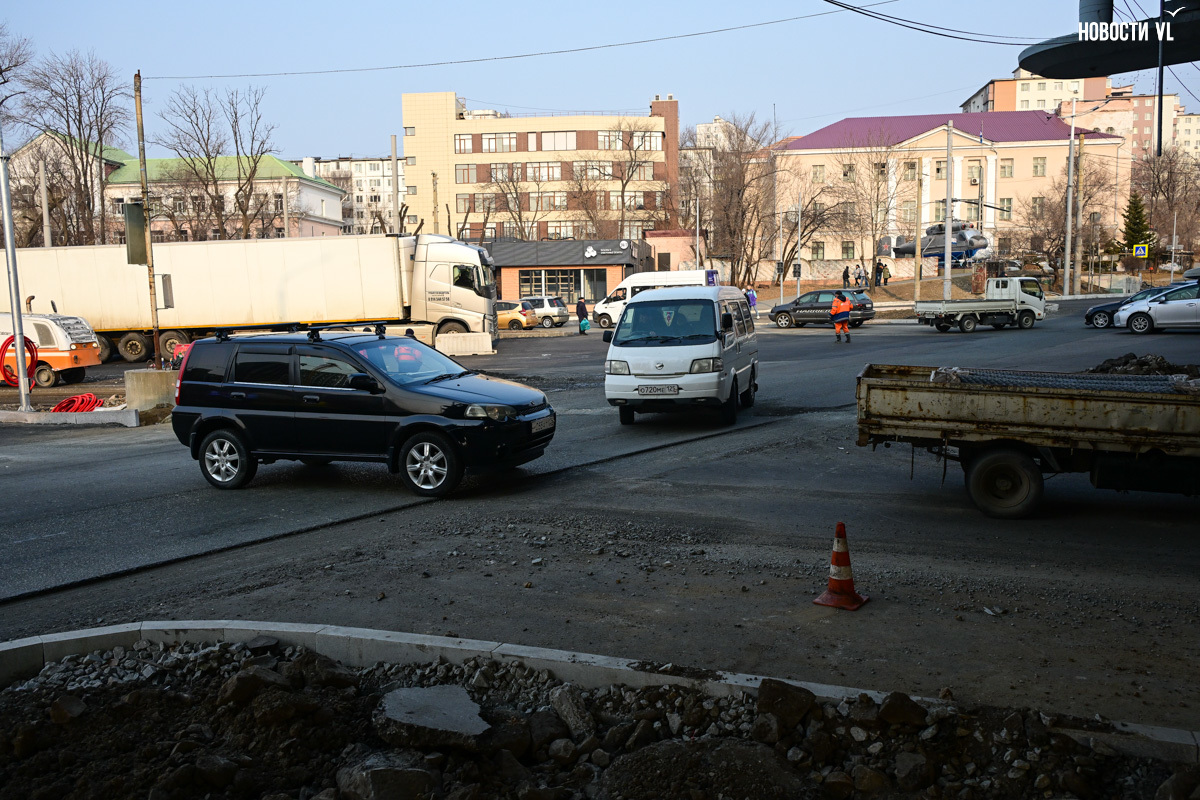 Проблема пока в том, что реконструкция перекрёстка ещё не завершилась. Водители недоумевают: здесь ещё нет разметки, ремонт не доделан, кругом траншеи, ямы, торчащие люки и так далее. Кажется, ещё не успели поставить все светофоры. А ведь сейчас потоки должны будут направить по дуге навстречу друг другу. Следить за экспериментом отправились корреспонденты Новостей VL.