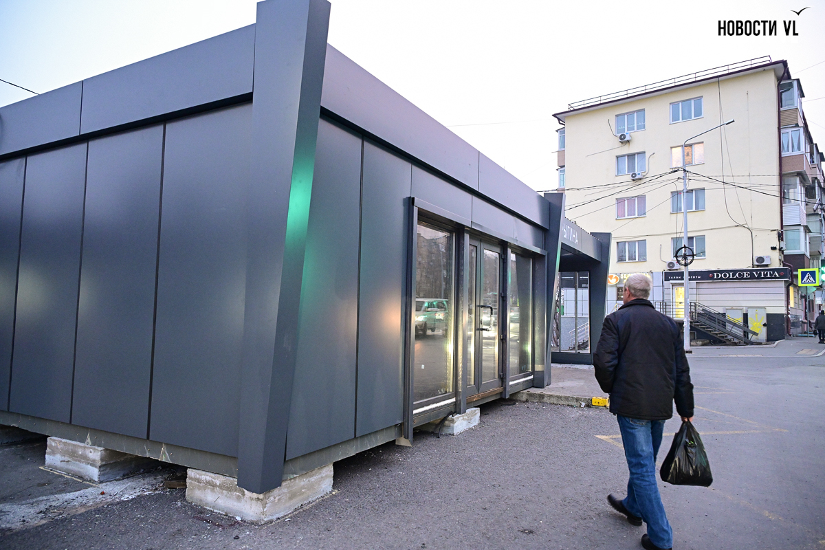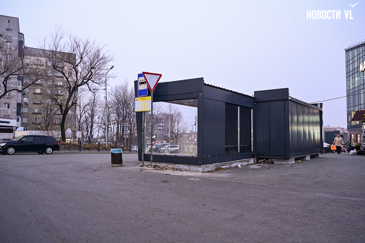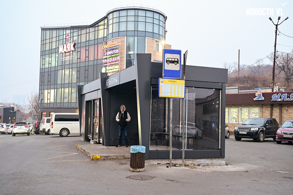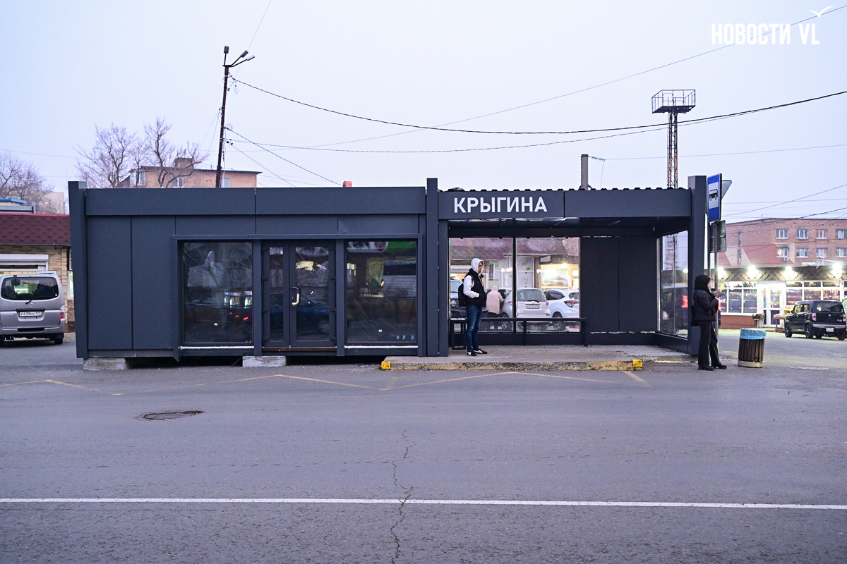 Во Владивостоке на остановке «Крыгина» восстановили остановочный павильон – он теперь «пристроен» к торговой точке, которая ещё закрыта. Самим пассажирам по-прежнему придётся мёрзнуть на эгершельдовском ветру, поскольку остановка не тёплая, без дверей. Поставили её тоже странно – на бетонные «кубики», как дачный домик.