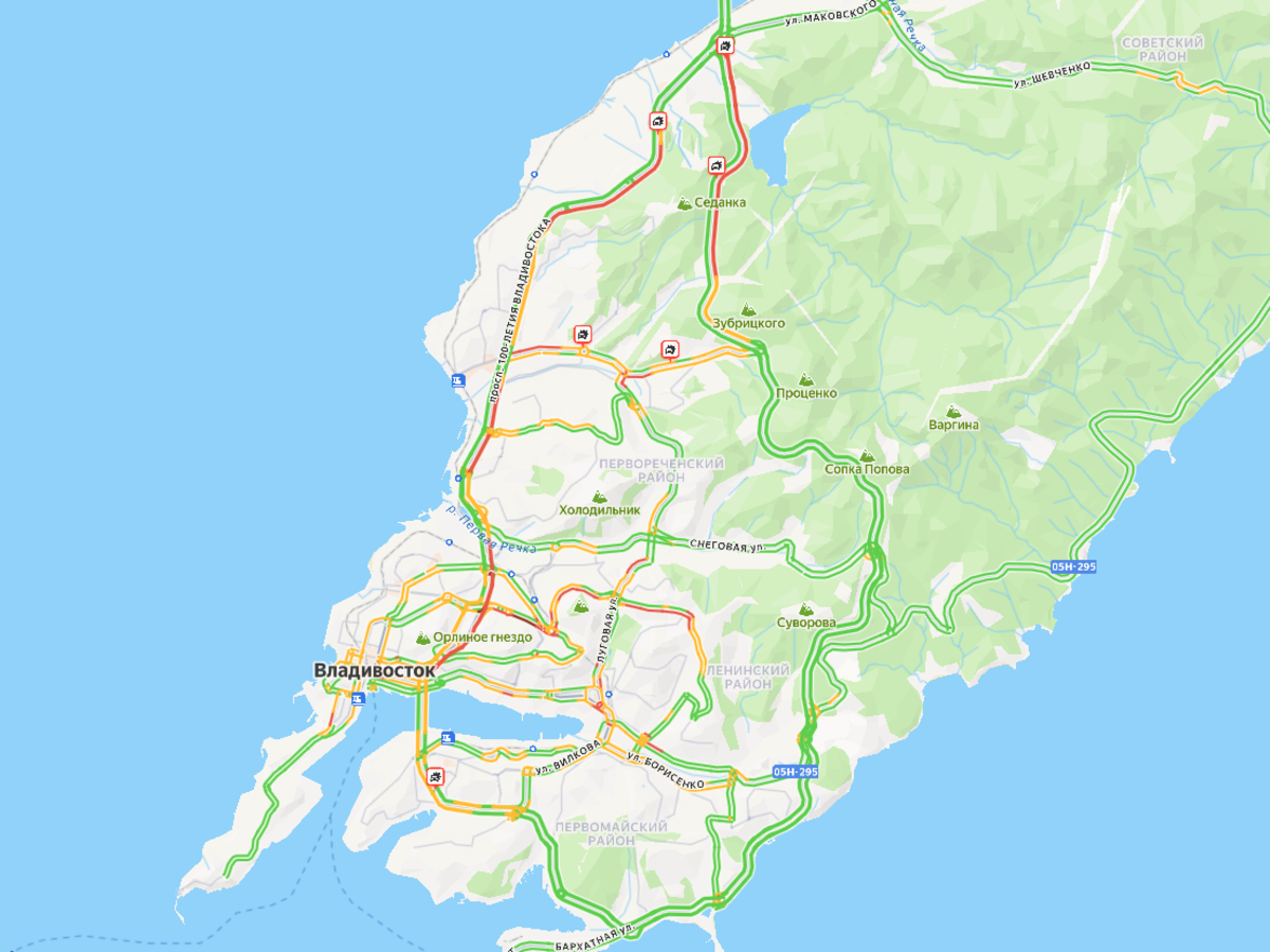 К вечеру пробки собрались по всем основным направлениям. На дорогах 7 баллов. По данным онлайн-карт, свободно сейчас только на Русском острове и на объездной трассе, хотя и там в районе водохранилища придётся постоять.