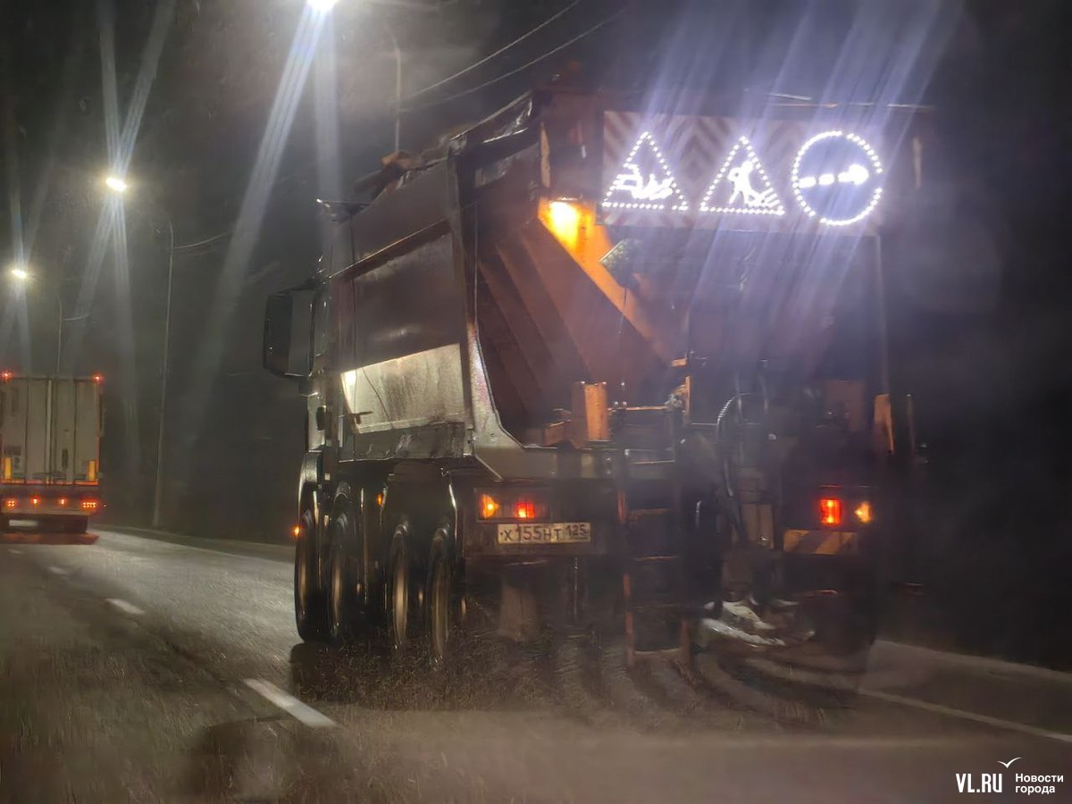 19:38: Дорожники приступили к обработке проезжей части противогололёдными материалами. Работы ведутся во всех районах Владивостока.