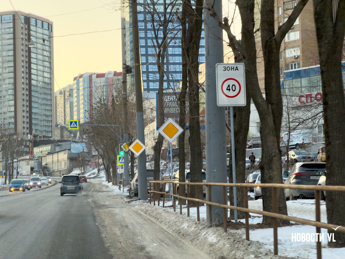 Зачем на Народном проспекте понадобилось устанавливать именно зону вместо обычных знаков ограничения скорости, не совсем понятно. К знаку «Зона 40» во Владивостоке вообще есть вопросы. К примеру, после поворота на одностороннюю Светланскую не понятно, где эта зона заканчивается. Кажется, там знак «Конец зоны 40» просто забыли. А в 2024 году снизили скорость по Университетскому проспекту на Русском острове – от моста до океанариума. Но после поворота на Канал знак «Зона 40» продублировали, хотя это и не требуется. Видимо, дорожники сами к нему ещё не привыкли.