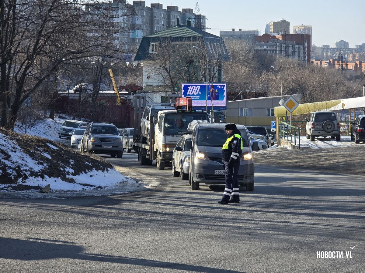 На месте работает ГИБДД. Инспекторы регулируют движение, участок, на котором лежит труба, огородили оранжевыми конусами. От Снеговой собралась пробка.