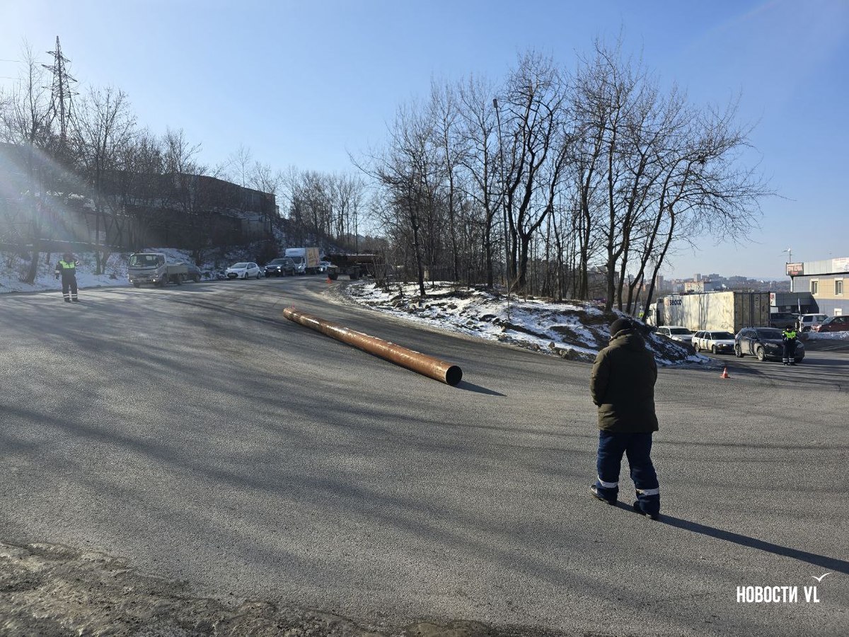 Обновление 15:58: Движение машин на участке, где упала труба, осуществляется в обычном режиме, сообщила полиция.