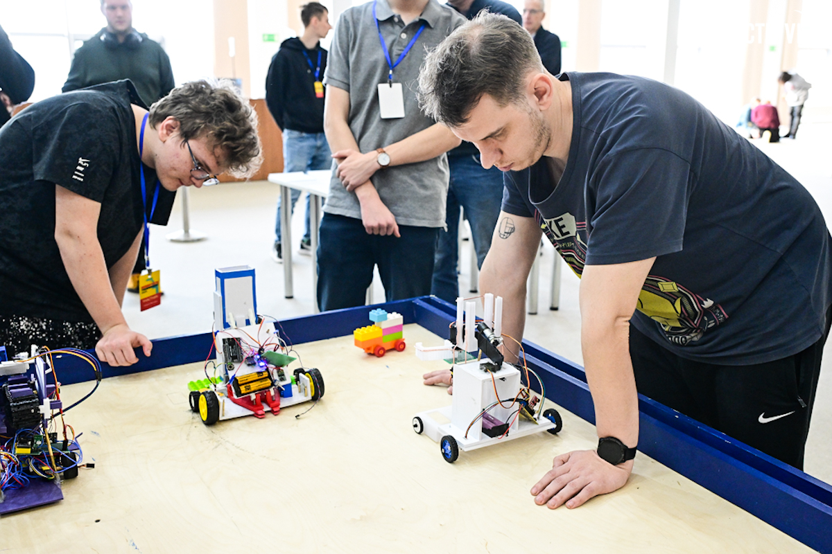 В этом году в одном из конференц-залов университета 24 часа подряд, не покладая рук и без перерывов на сон, трудились 16 команд. Возраст участников абсолютно разный – роботов собирали школьники, студенты, преподаватели и сотрудники известных местных компаний.