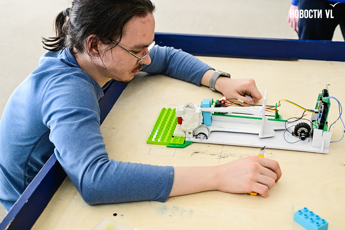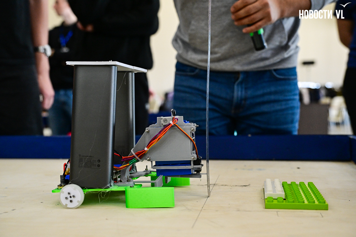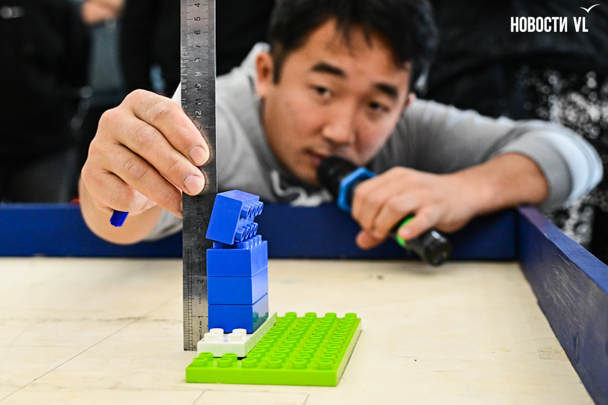 В воскресенье, 7 декабря, в ДВФУ завершился ежегодный 24-часовой хакатон по робототехнике Robotics tournament. 16 команд абсолютно разных возрастов сутки конструировали и программировали броских роботов с необычными инженерными решениями, главной задачей которых было возвести самую длинную и крепкую башню из кубиков лего. У кого-то был подъёмный механизм, чей-то робот выталкивал и группировал кубики. Участники не выпускали из рук свои творения, даже в последний момент придумывая что-то новое и совершенствуя уже почти совершенный аппарат, а кто-то надеялся на удачу.