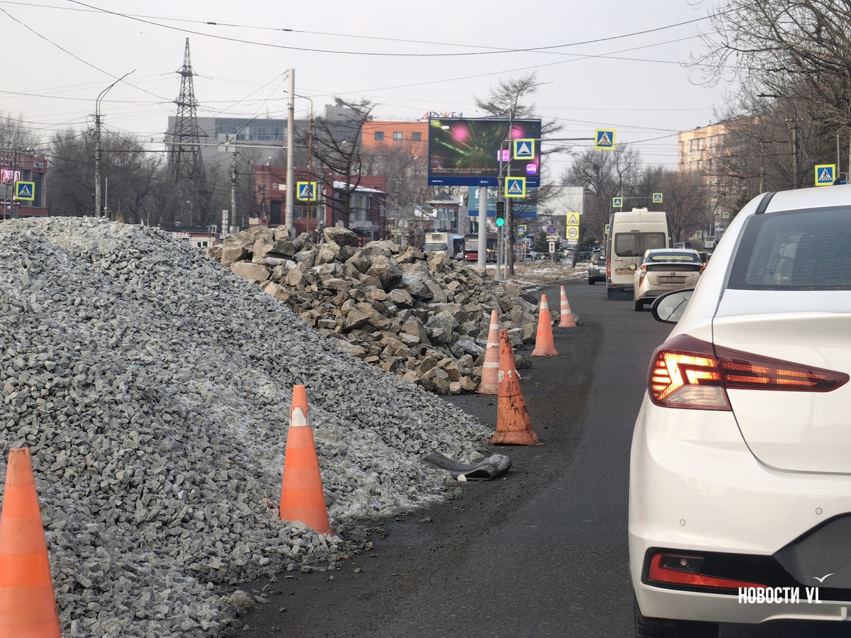 К понедельнику ситуация в целом мало изменилась, хаос остался, но стал «полууправляемым»: светофоры работают, что уже хорошо. Но асфальтирование всё ещё продолжается. Причём рабочие занимаются теми же участками, что и месяц назад, – например, проездом вдоль Русской в сторону кольца Багратиона. У дорожников осталась буквально пара дней относительного тепла, чтобы хотя бы закончить с асфальтом, во второй половине недели во Владивостоке снова похолодает.