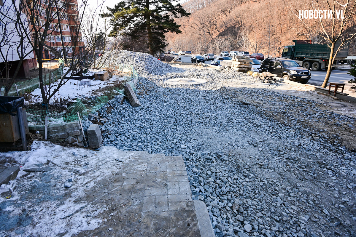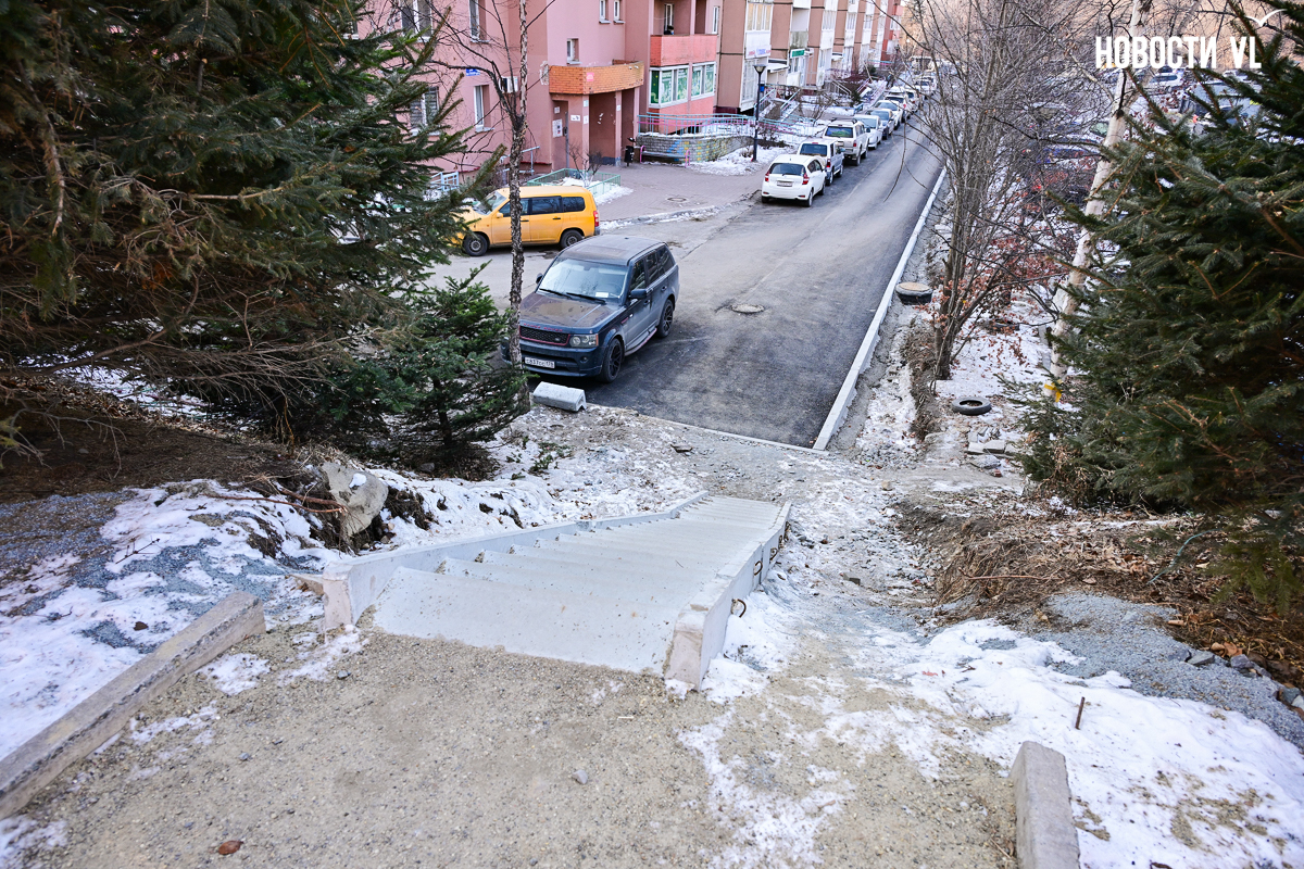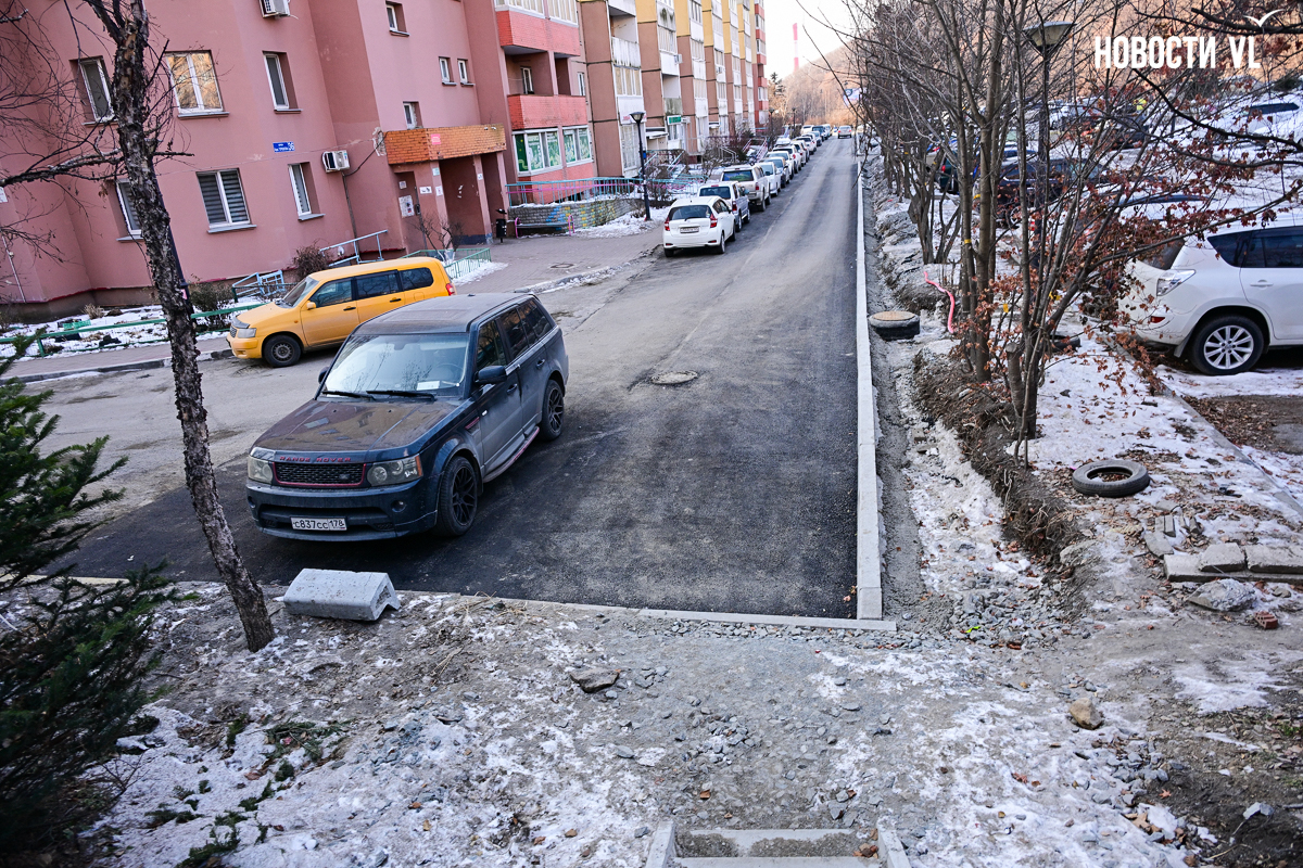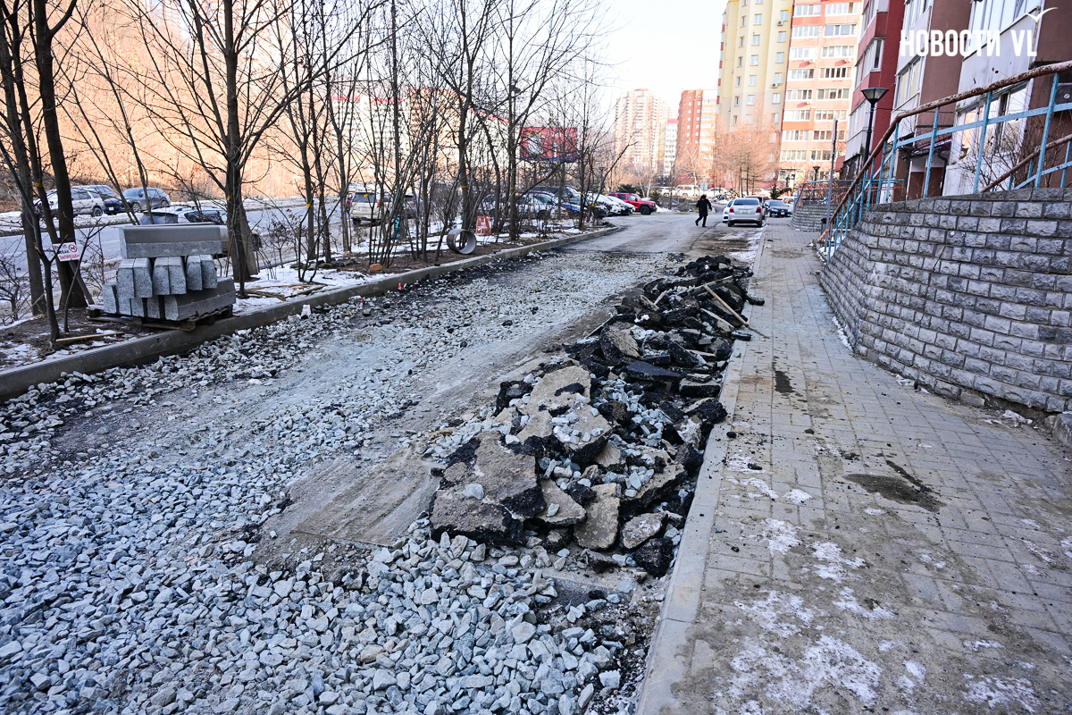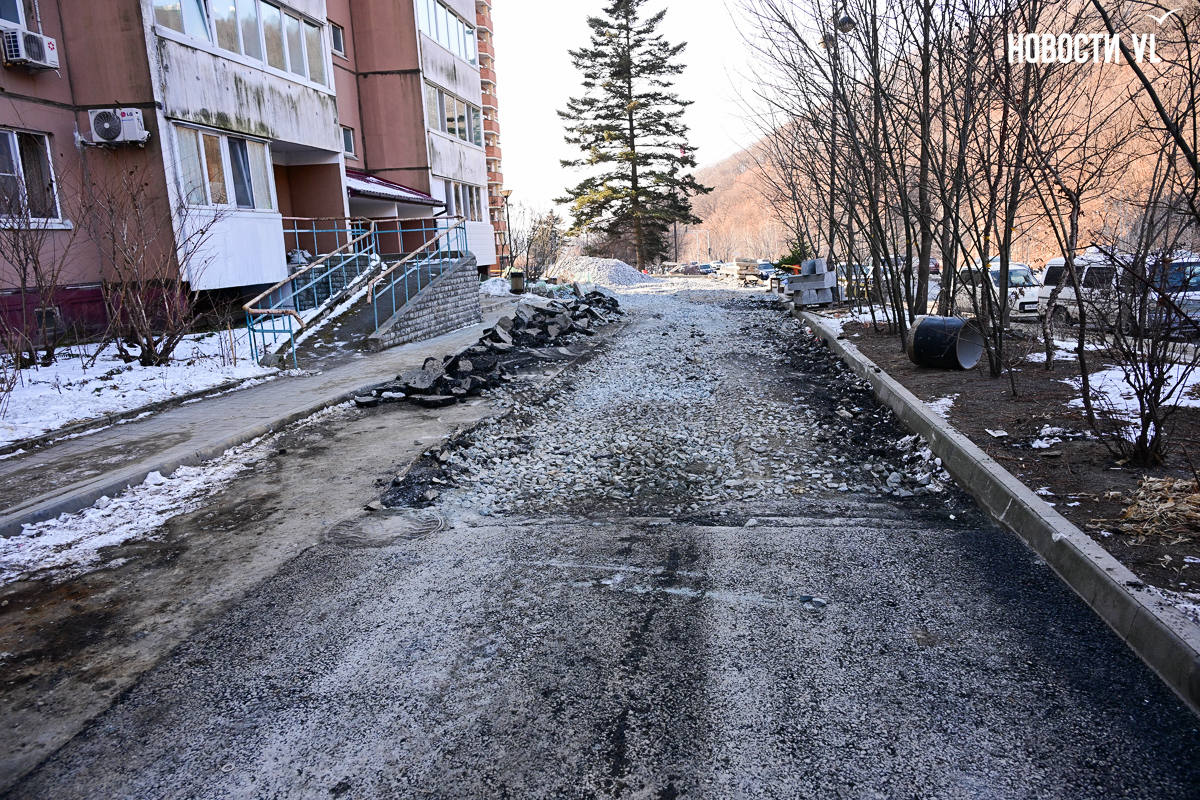 Подрядчик «Примводоканала», затянувший с ремонтом 1 километра труб в районе Адмирала Горшкова и устроивший несколько порывов и фонтанов, наконец приступил к благоустройству. Рабочие уложили асфальт у нескольких домов в местах, где были траншеи, восстановили лестницу и двинулись к следующим домам. Жители Адмирала Горшкова, 36 негодуют – им так и не восстановили разбитую ливнёвку, не вернули перила лестнице, оставили ямы и свалили в кучу бордюры. В «Примводоканале» уверяют, что благоустройство ещё не завершено, и все недостатки будут устранены.
