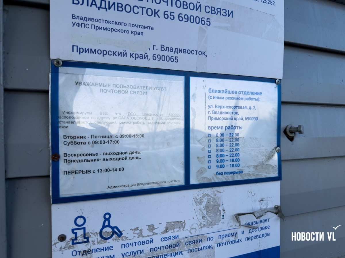 За последние три года во Владивостоке закрылось три почтовых отделения: на Енисейской, 20, на Крыгина, 40 и на Фадеева, 4а. Как минимум пять отделений, которые раньше были открыты до 20:00-22:00, сократили режим работы. На Саратовской, 9 и Верхнепортовой, 32 почта теперь работает до 18:00, на Партизанском проспекте, 76 и на Тухачевского, 24 – вообще в 16:00 закрывают двери. А на острове Попова на почту можно попасть только по вторникам, четвергам и субботам.