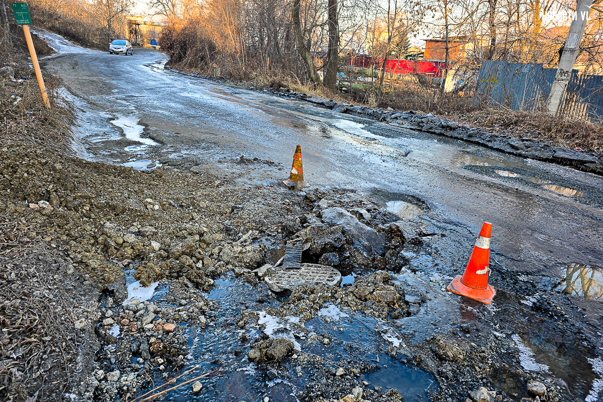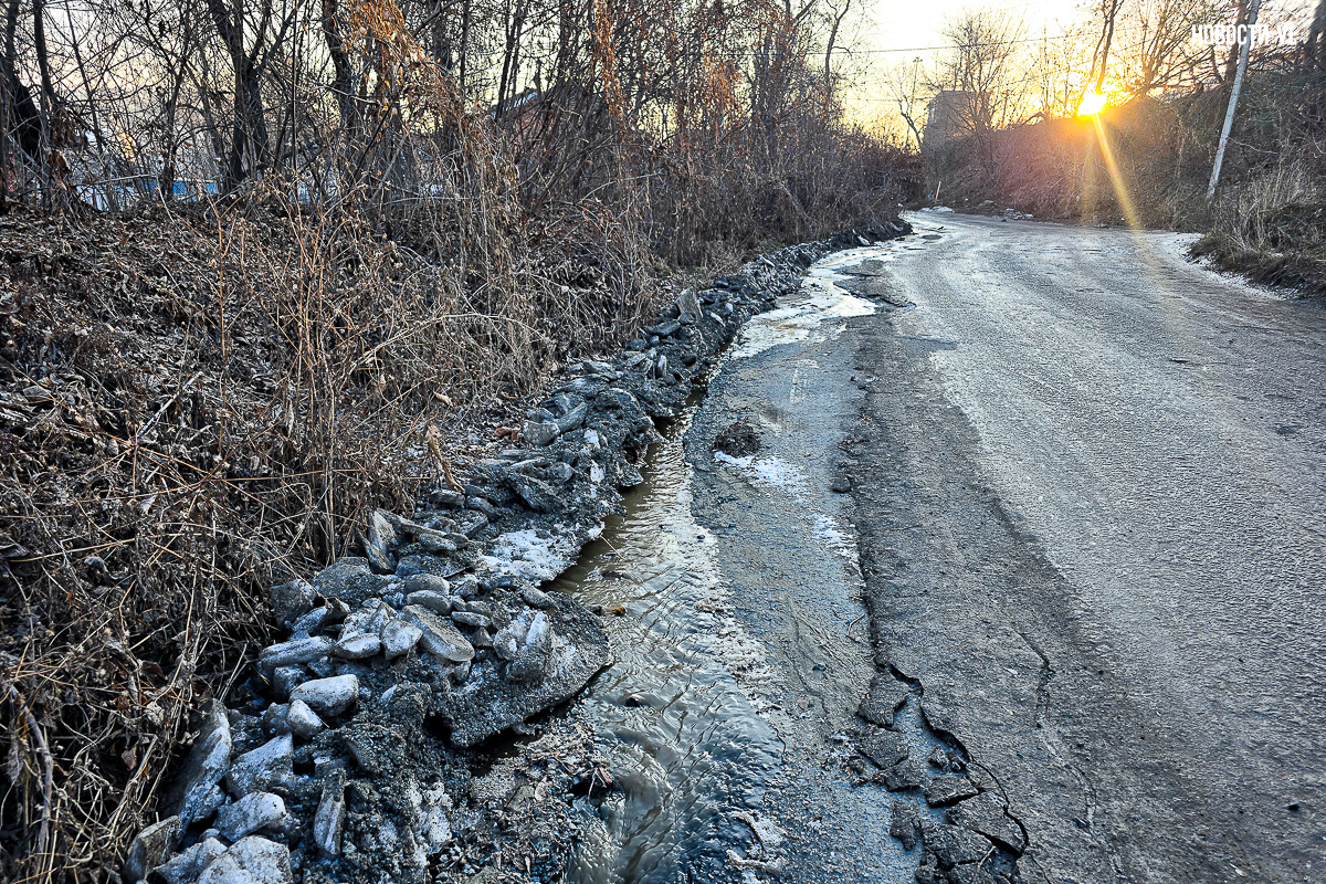 «Дорогу всю размыло, образовалась огромная лужа, ручьи. А это единственная дорога к домам на Острякова, 42в. К нам не может подъехать маршрутный автобус, единственный который обслуживает наш микрорайон (№ 87 «Семёновская – Мыс Чумака». – Прим. ред.). У нас много пенсионеров, как к нам будет заезжать скорая в случае необходимости?» – недоумевает местная жительница.
