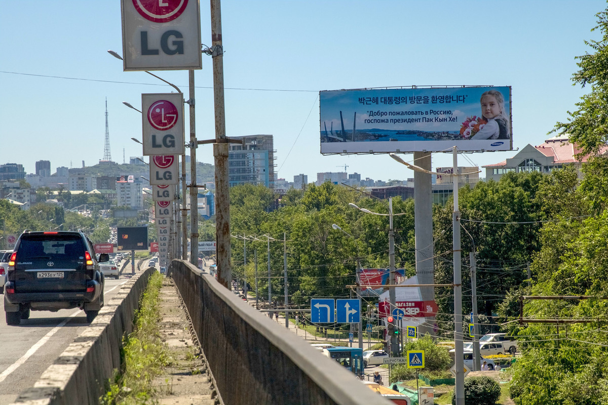 Напомним, путепровод на Второй Речке ввели в эксплуатацию в 1995 году сразу с опорами освещения. Но в 1990-х столбы украшали флагами. Вскоре рекламщики заметили потенциал и превратили путепровод в рекламный тоннель, который ещё и светится по ночам. Картинки менялись, LG рекламировали разные свои продукты. Но где-то между 2012-2014 годами на всех конструкциях повесили красные логотипы компании на белом фоне – таким путепровод и запомнился многим.