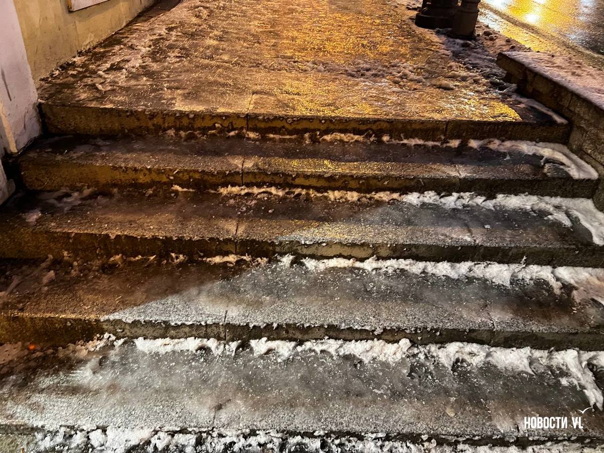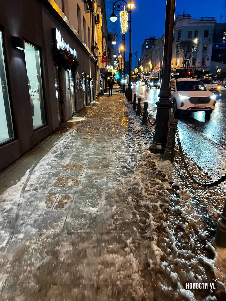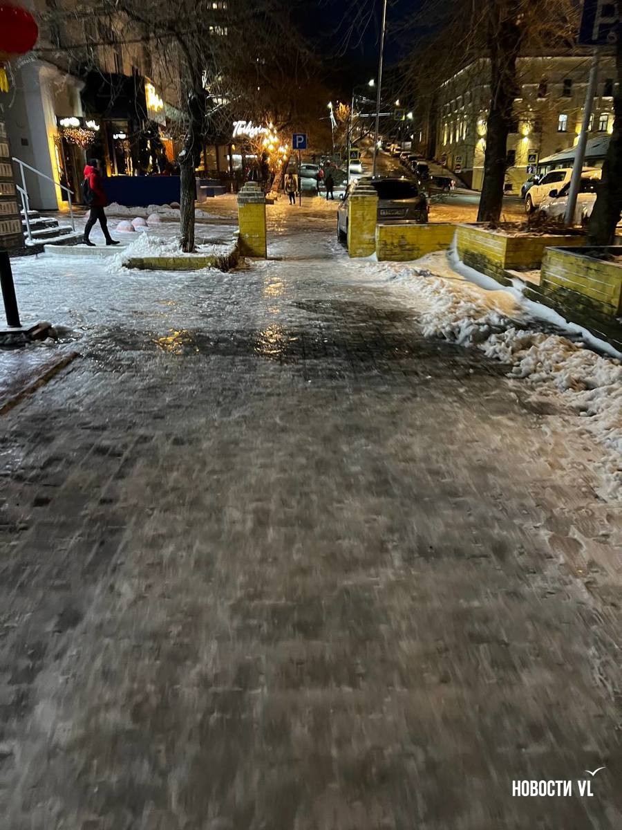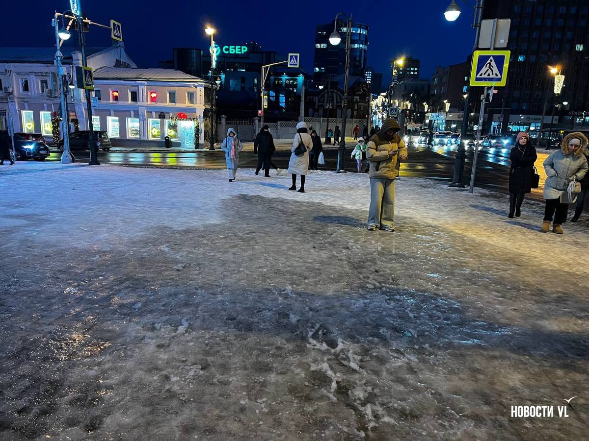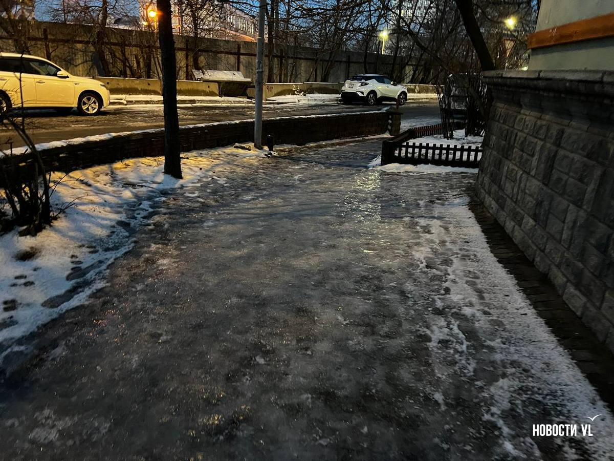 Утром людей ждал неприятный сюрприз: тротуары и дороги покрыты коркой льда за очень редкими исключениями. Заледенел центр города, улицы на Первой Речке, Чуркине и во всех остальных районах, остановки общественного транспорта не посыпаны и не очищены, а лестницы и знаменитые владивостокские сопки превратились в коварные ледяные препятствия, которые крайне трудно форсировать и пешеходу, и автомобилю. Это, конечно, не ледяной дождь, но довольно близко по духу.