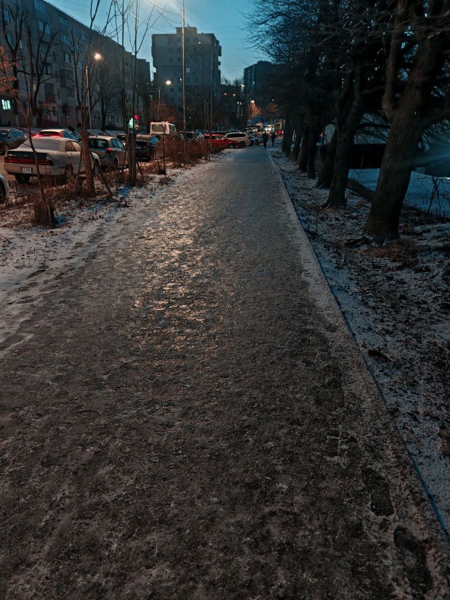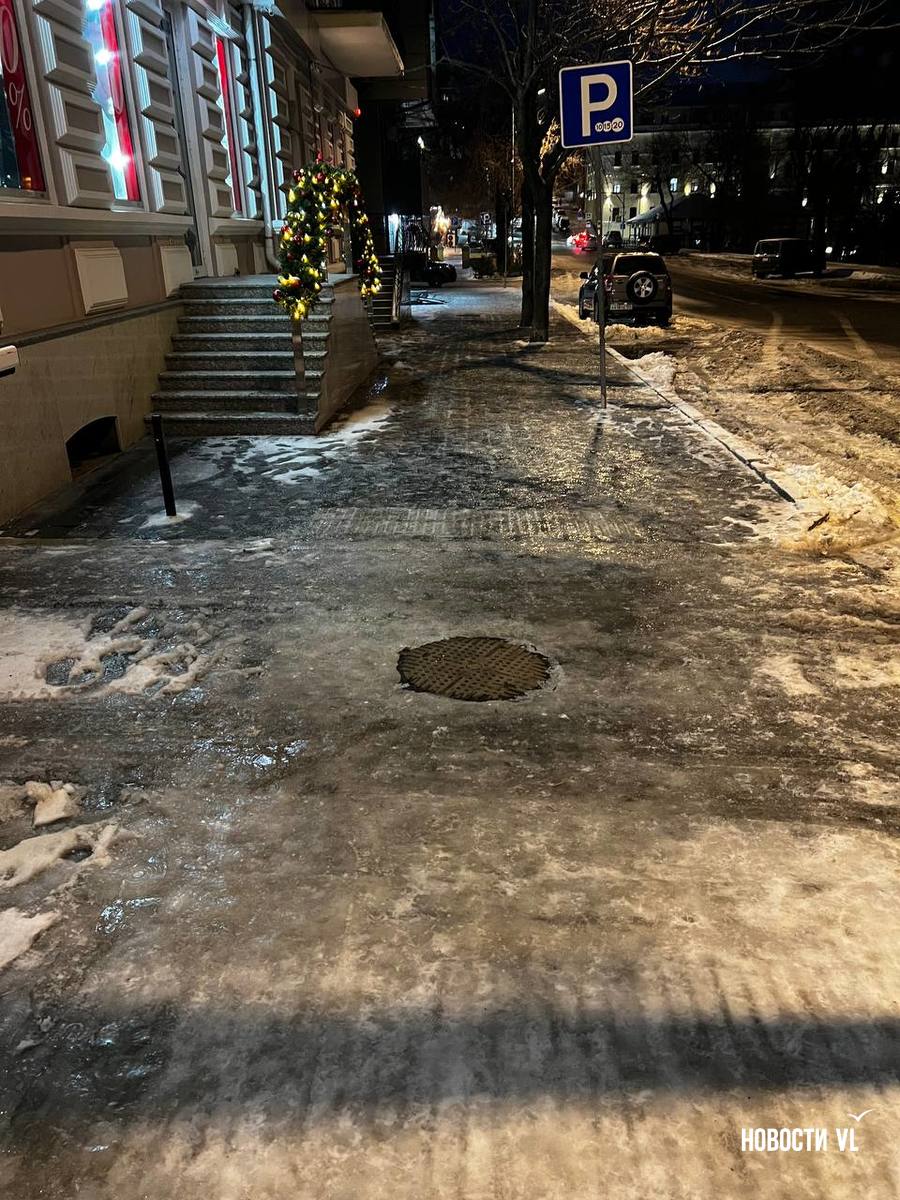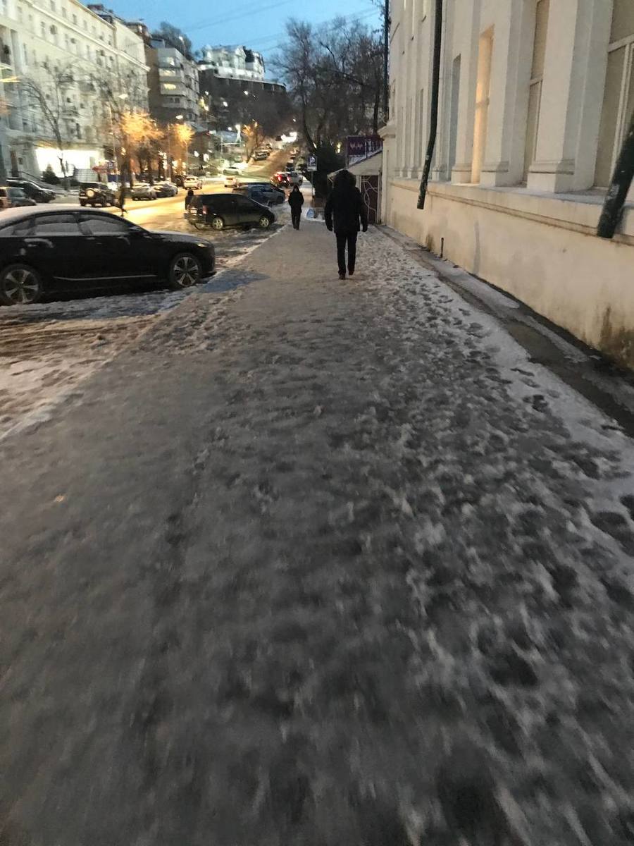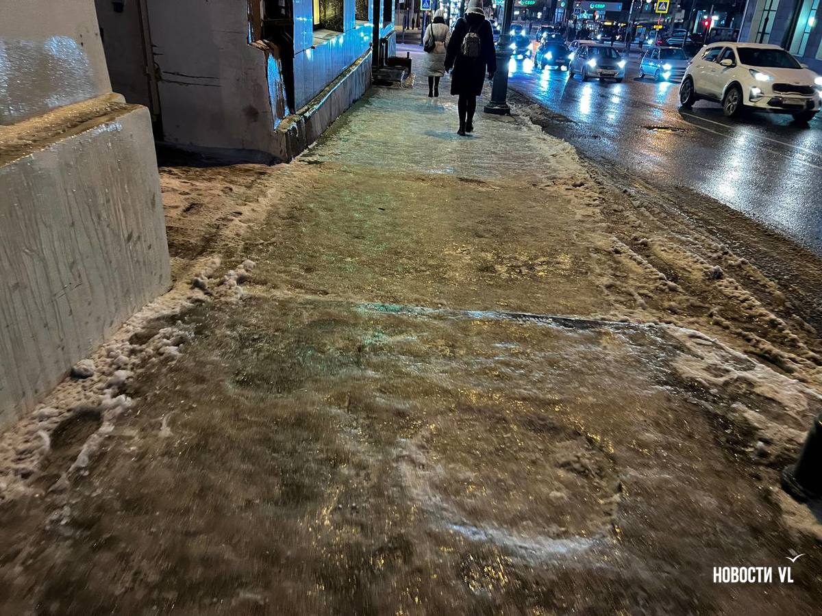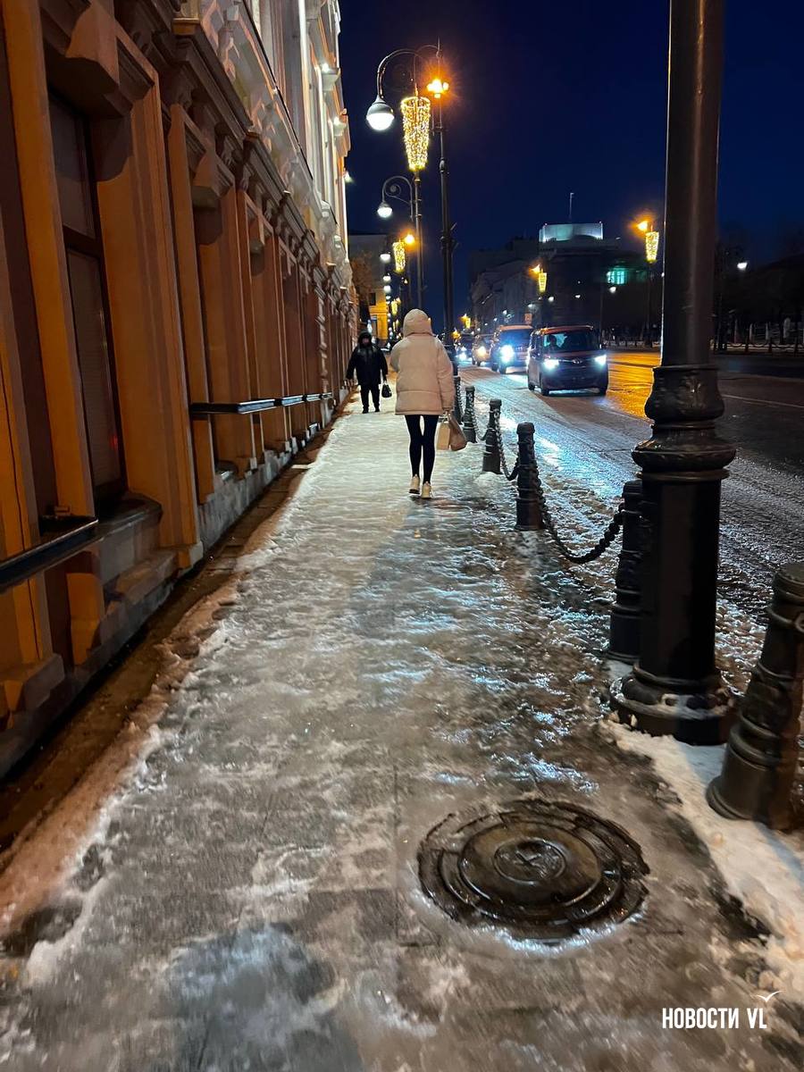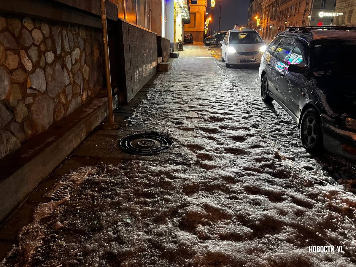 Утром людей ждал неприятный сюрприз: тротуары и дороги покрыты коркой льда за очень редкими исключениями. Заледенел центр города, улицы на Первой Речке, Чуркине и во всех остальных районах, остановки общественного транспорта не посыпаны и не очищены, а лестницы и знаменитые владивостокские сопки превратились в коварные ледяные препятствия, которые крайне трудно форсировать и пешеходу, и автомобилю. Это, конечно, не ледяной дождь, но довольно близко по духу.