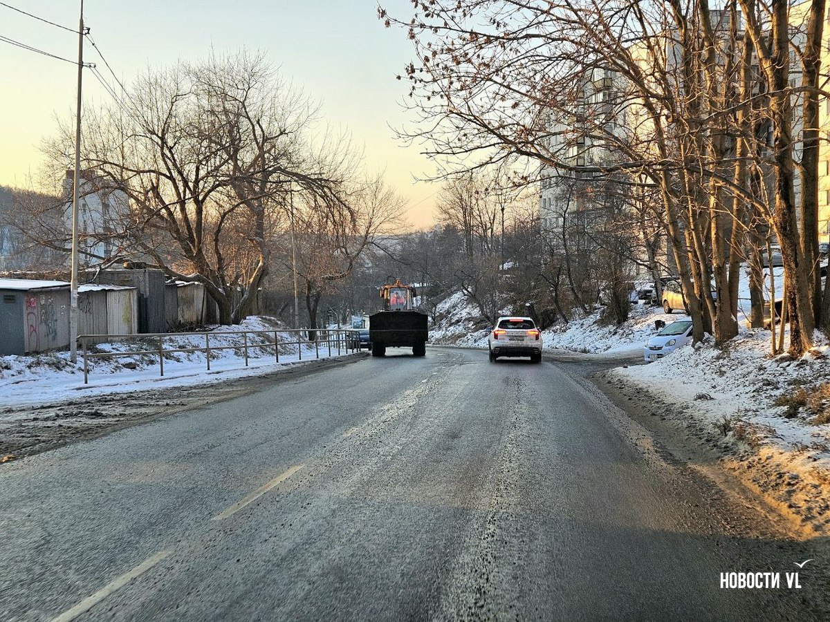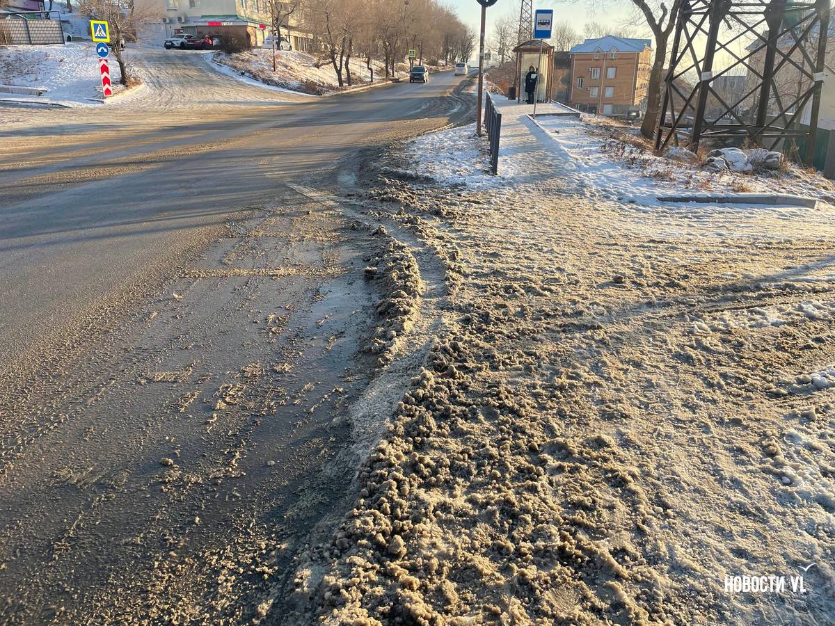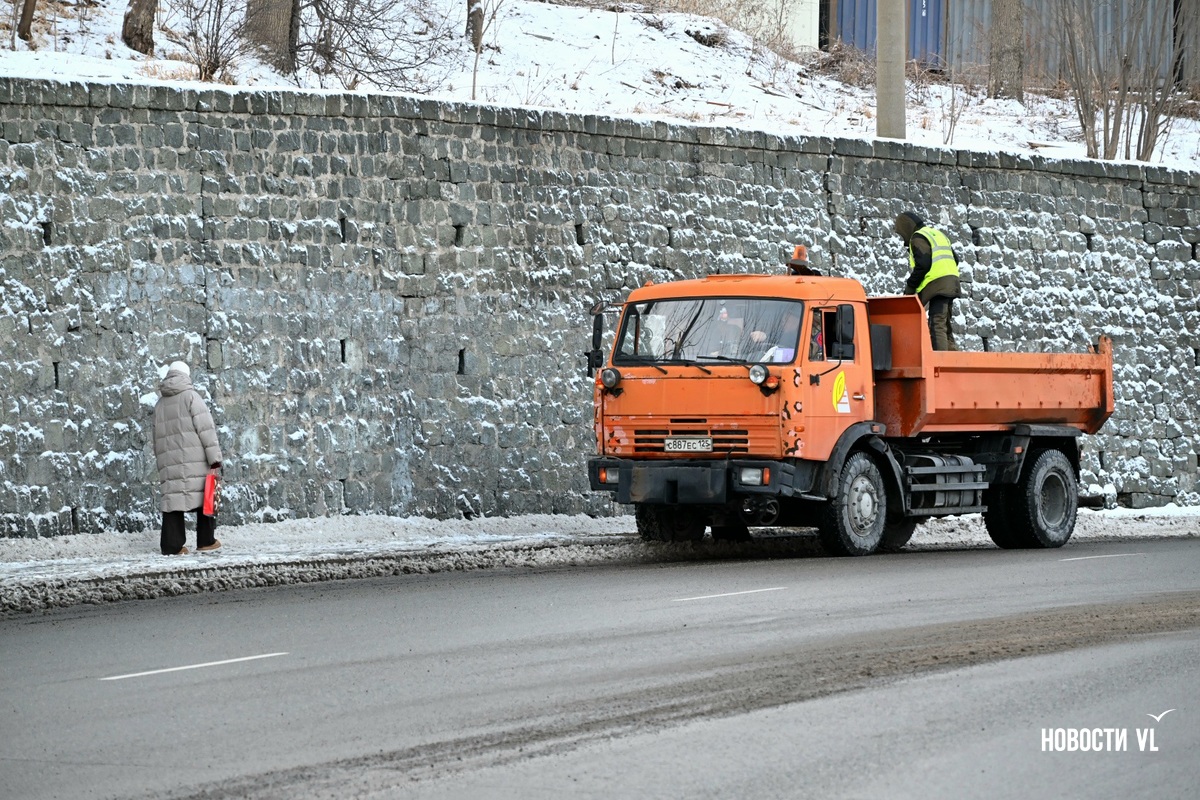 При этом СГТ сообщает, что ночью обработали противогололёдными реагентами проезжую часть и тротуары. Бригады посыпали проезды на Жигура, Надибаидзе, Адмирала Смирнова, Сабанеева, Океанском и Партизанском проспектах, Аллилуева, Майора Филипова, Русской, Фонтанной, Давыдова, проспектах Красного Знамени и 100-летия Владивостока, Коммунаров, 50 лет ВЛКСМ, Светланской, Калинина, Олега Кошевого, Катерной, Прапорщика Комарова, объездную трассу Седанка – Патрокл, дороги острова Русский и другие участки города. Вручную были обработаны проезды к социальным учреждениям во всех районах Владивостока.