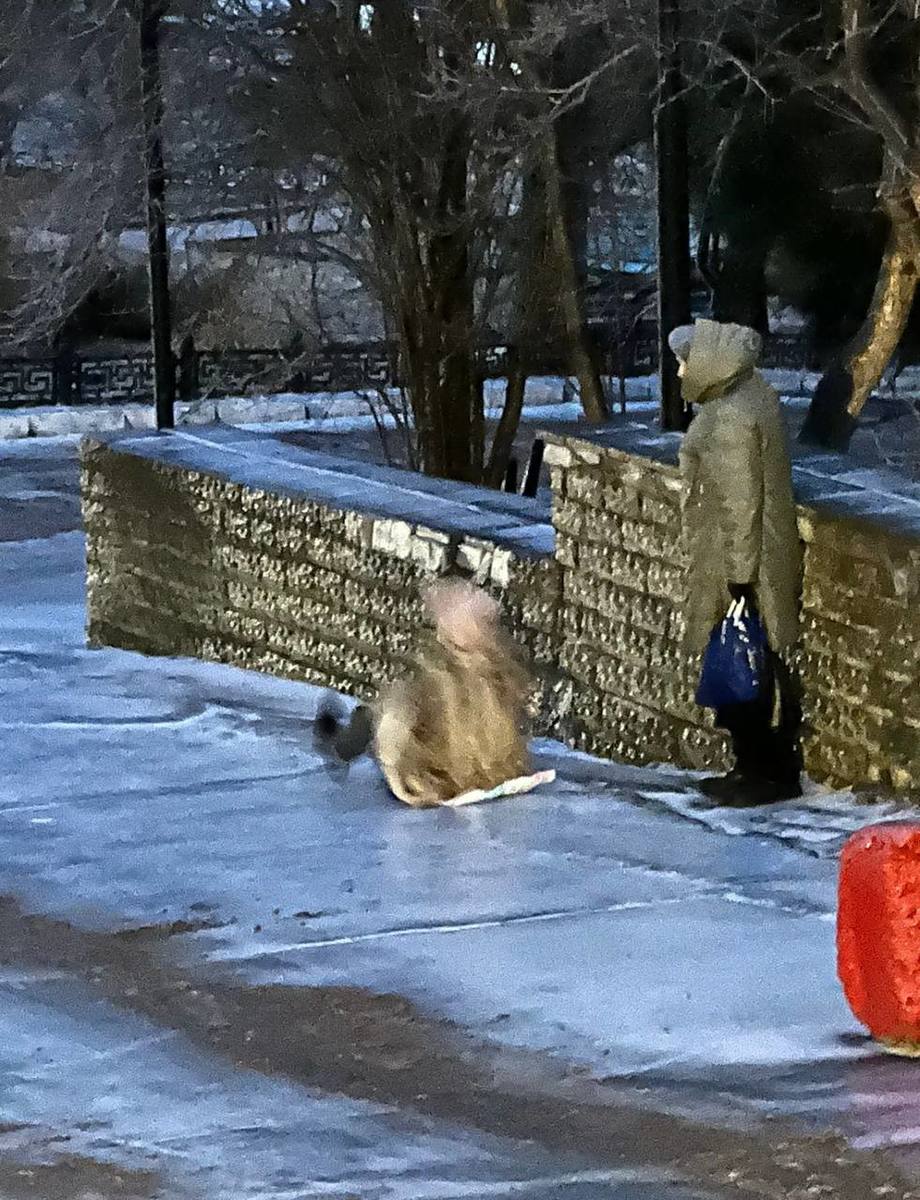 Уже есть и первые пострадавшие. На Океанском проспекте упал и сильно ушибся мужчина, неподалёку упала и ударилась головой женщина. Падают люди на Харьковской, в районе рынка и трамвайного кольца на Баляева.