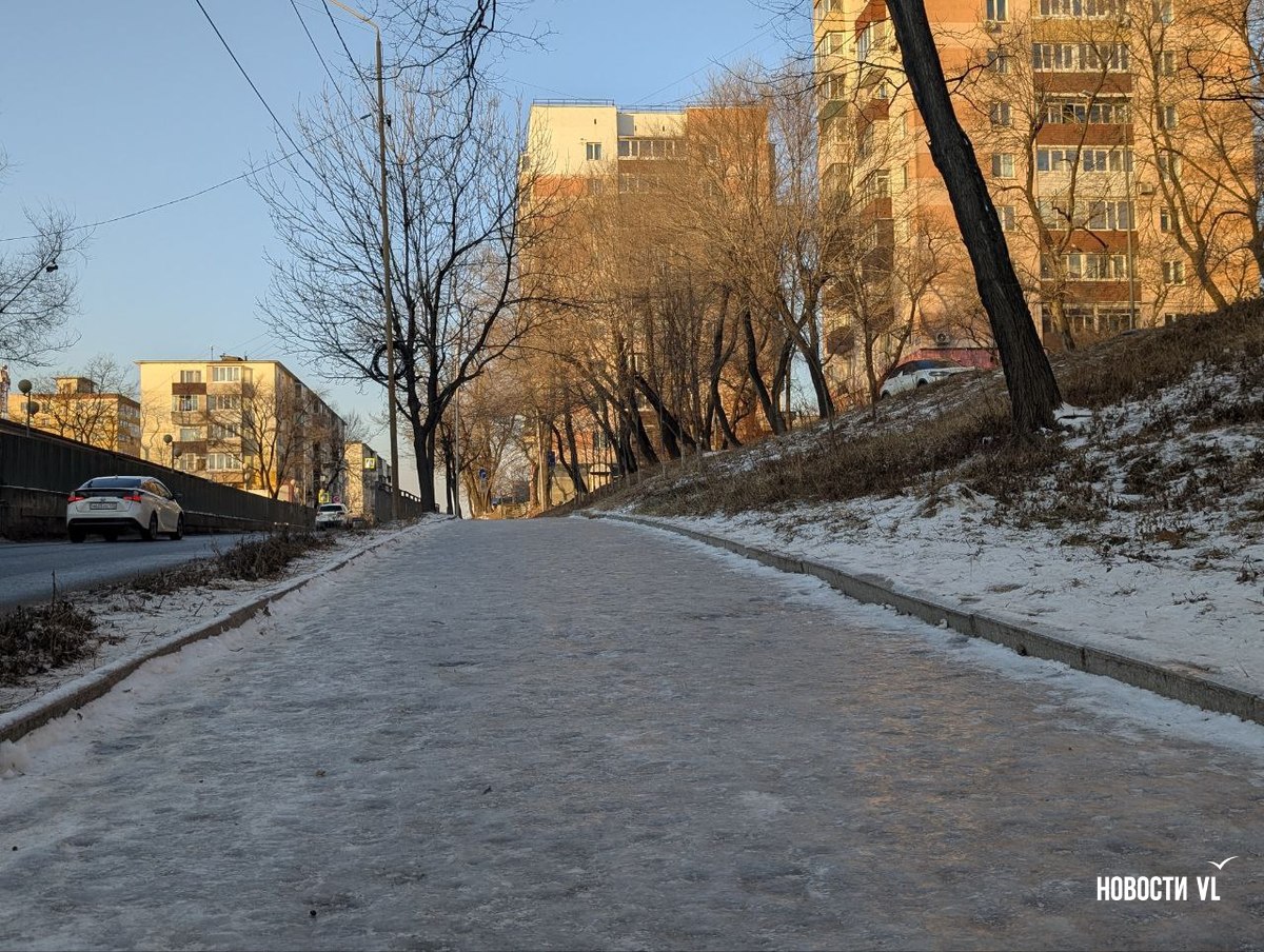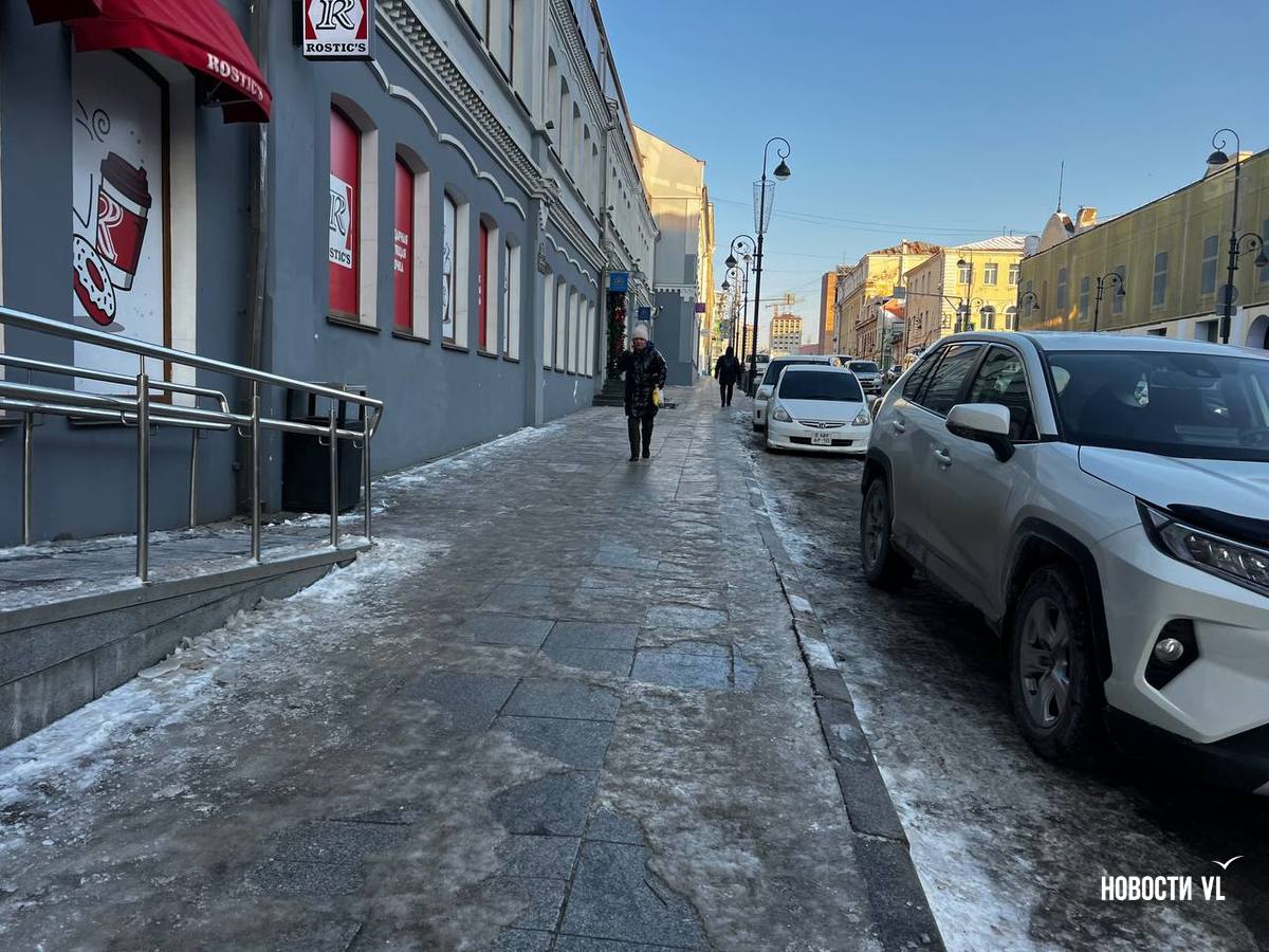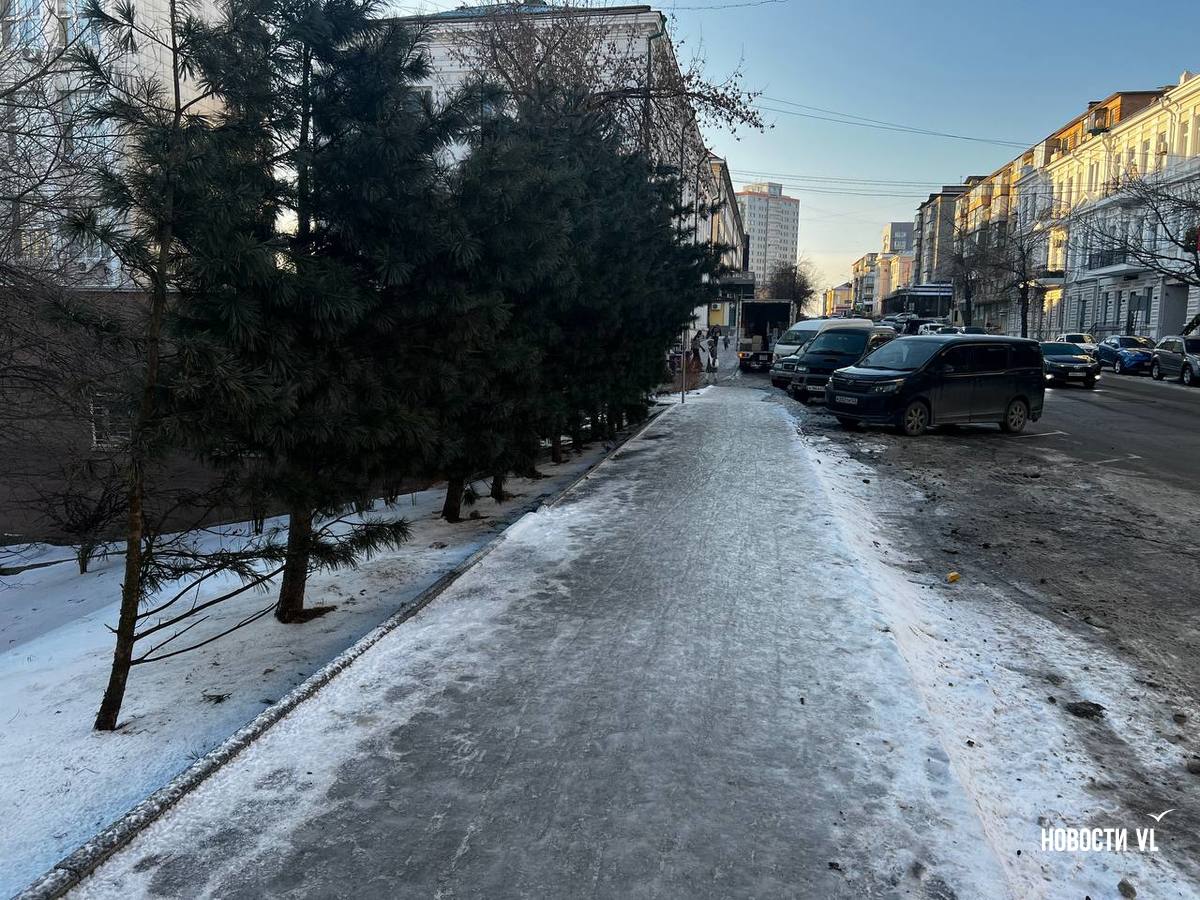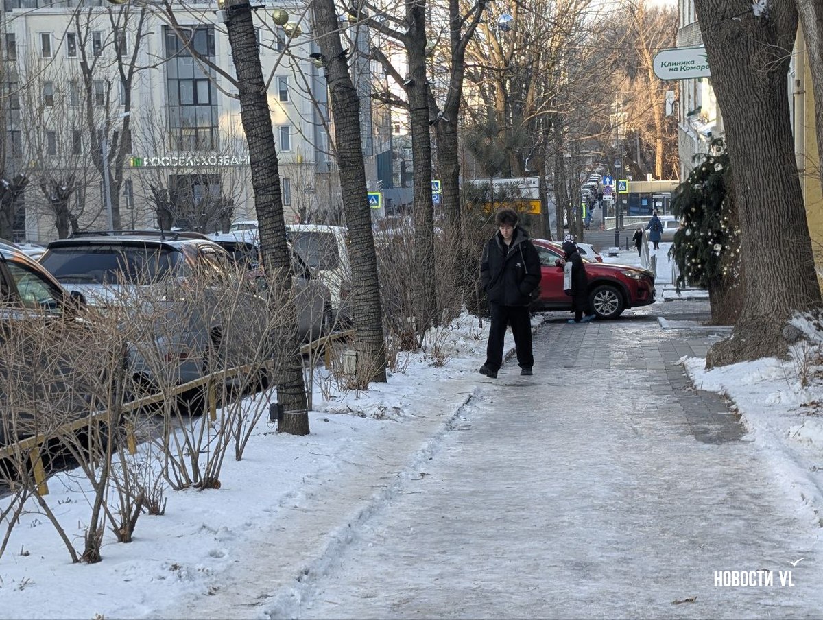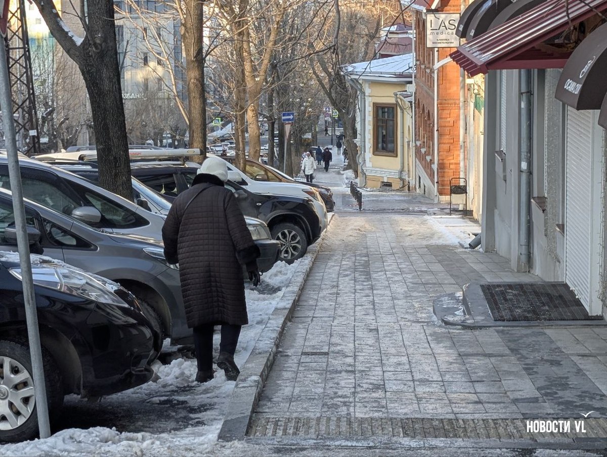 На второй день после снегопада улицы Владивостока остаются крайне опасными для передвижения. Даже в центре города есть тротуары, которые не только не почистили, но и даже, похоже, не посыпали реагентами. Местами, в том числе и на горках, путь пролегает по отполированному льду. Пешеходы обходят такие участки по проезжей части, считая это меньшим риском. Возле медучреждений на льду падают пациенты, в том числе и беременные. Даже прокуратура признаёт, что качество уборки в городе провальное.