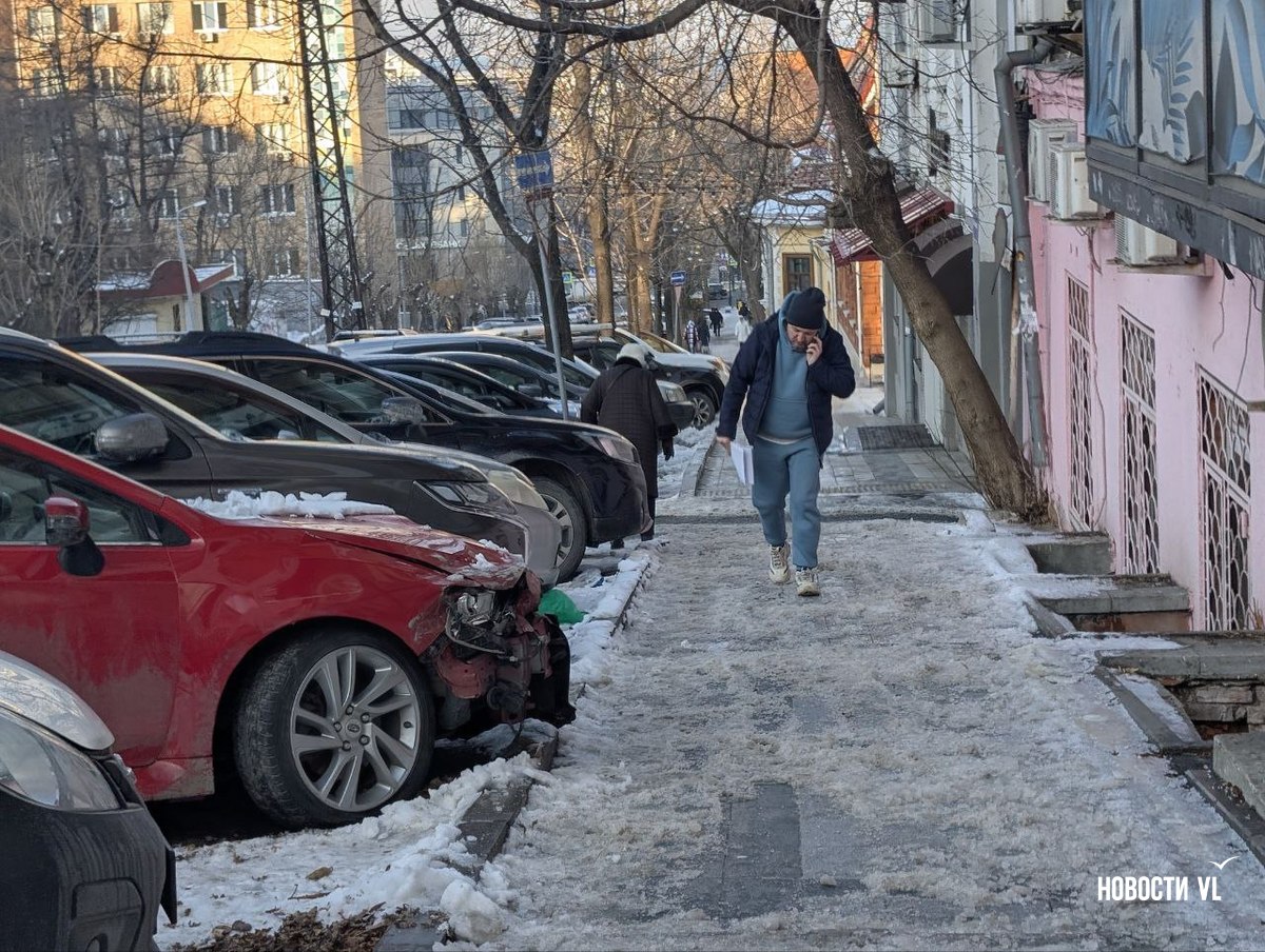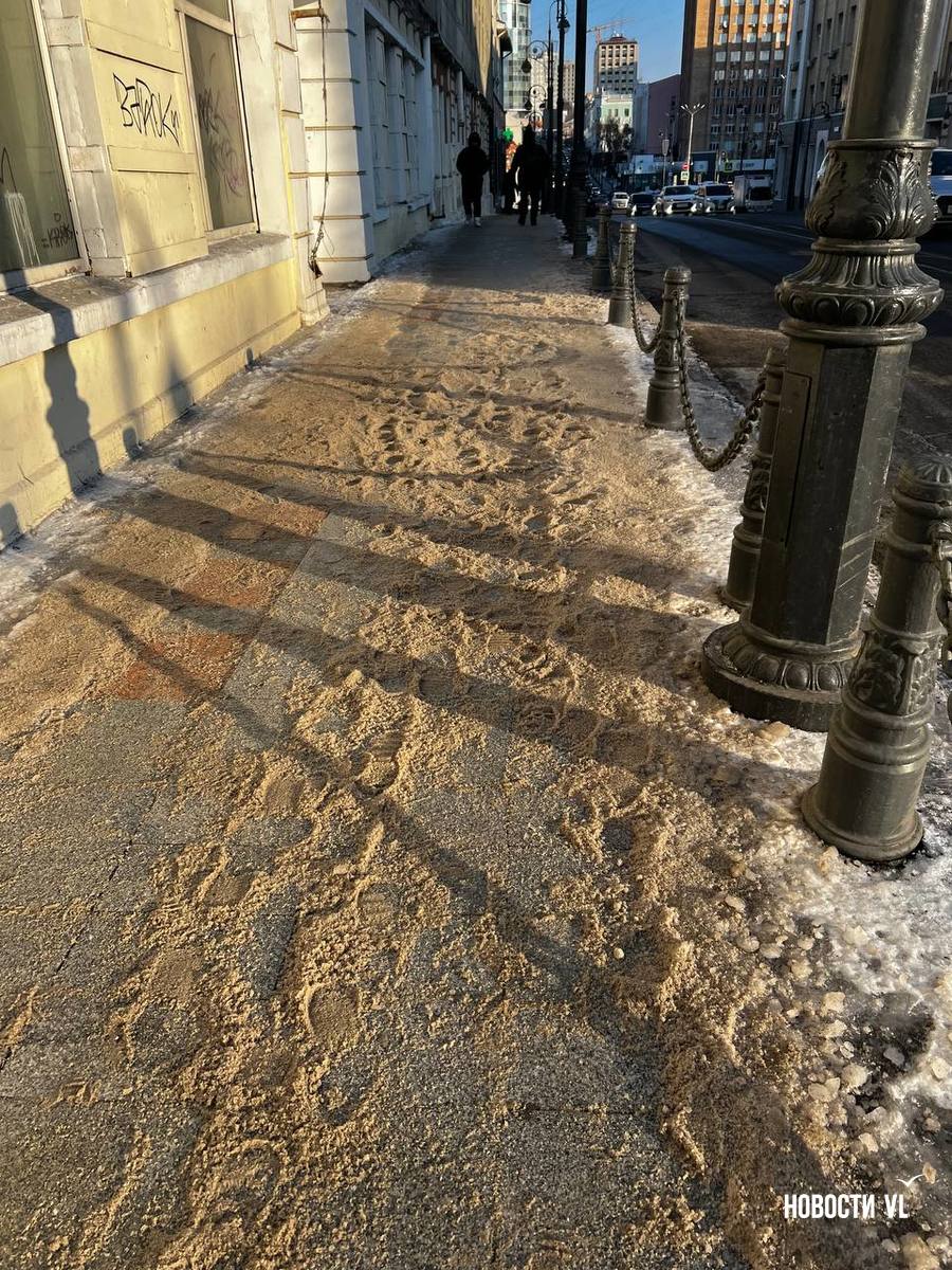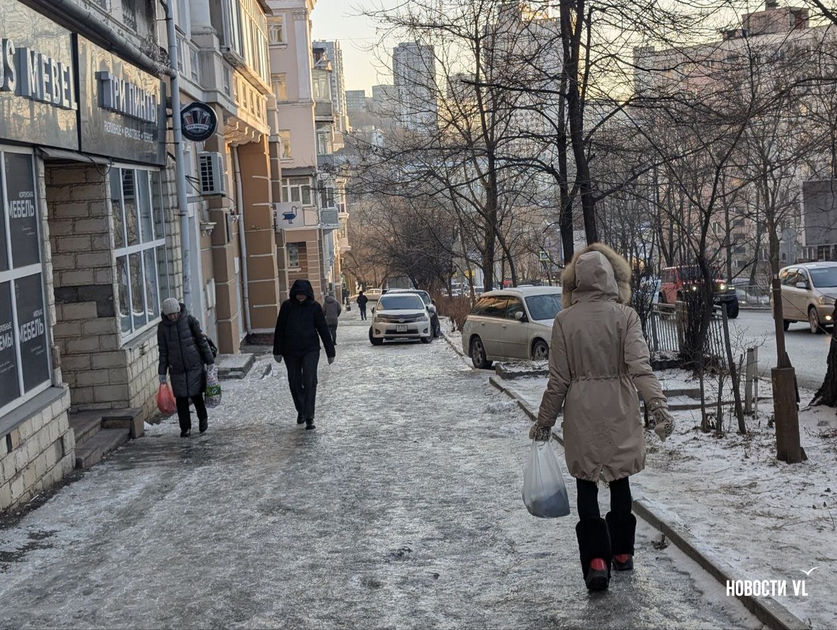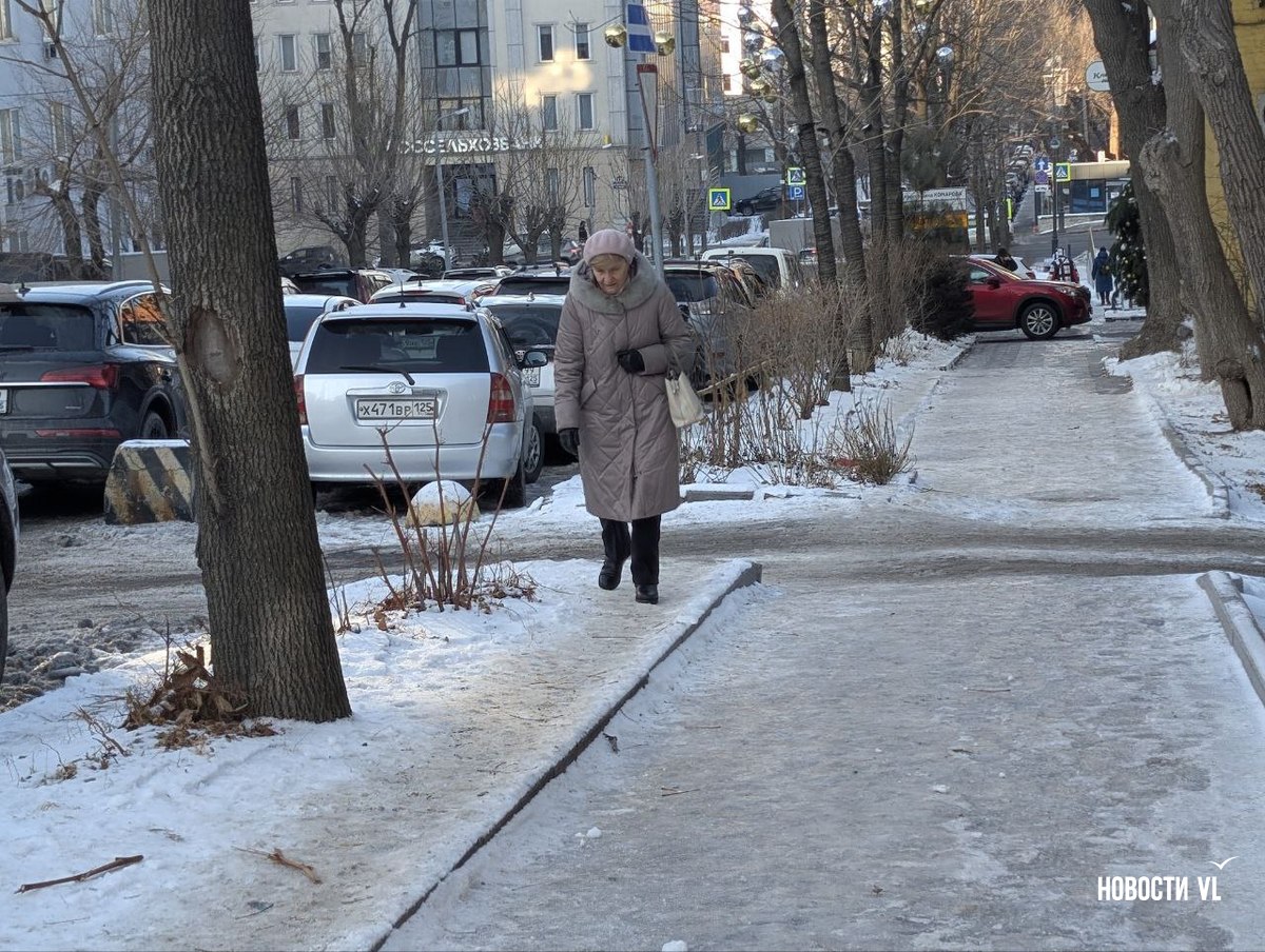 На второй день после снегопада улицы Владивостока остаются крайне опасными для передвижения. Даже в центре города есть тротуары, которые не только не почистили, но и даже, похоже, не посыпали реагентами. Местами, в том числе и на горках, путь пролегает по отполированному льду. Пешеходы обходят такие участки по проезжей части, считая это меньшим риском. Возле медучреждений на льду падают пациенты, в том числе и беременные. Даже прокуратура признаёт, что качество уборки в городе провальное.